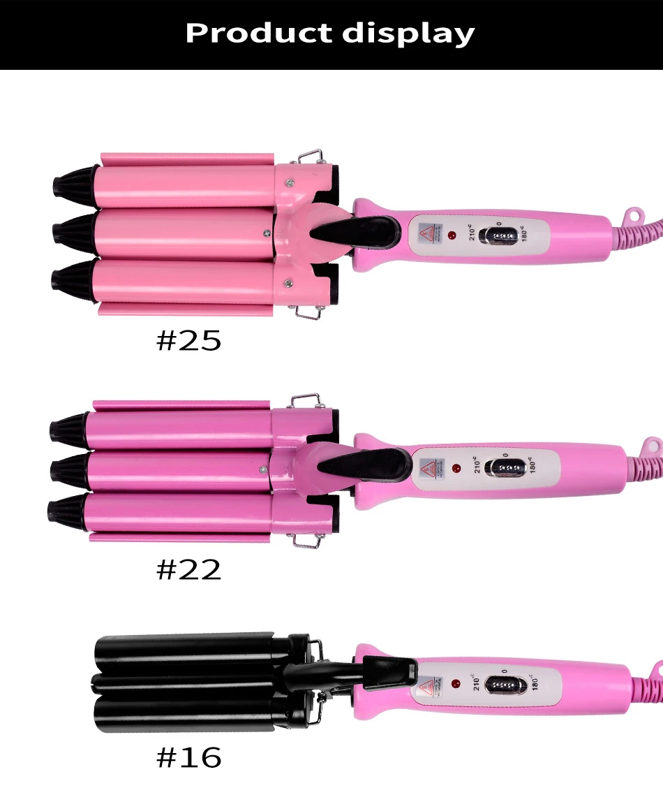 Профессиональные электрические щипцы для завивки волос, 3 бочки, щипцы для завивки быстрого нагрева, инструменты, регулируемый цифровой прибор для завивки волос, Стайлинг, 220 В, европейская вилка