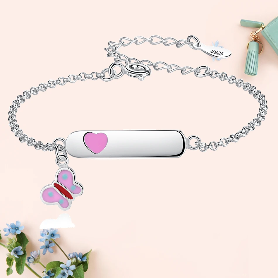 BELAWANG браслет из стерлингового серебра 925 пробы с очаровательным сердцем и бабочкой, браслет с гравировкой имени, индивидуальный браслет для девочек, персонализированные украшения для детей