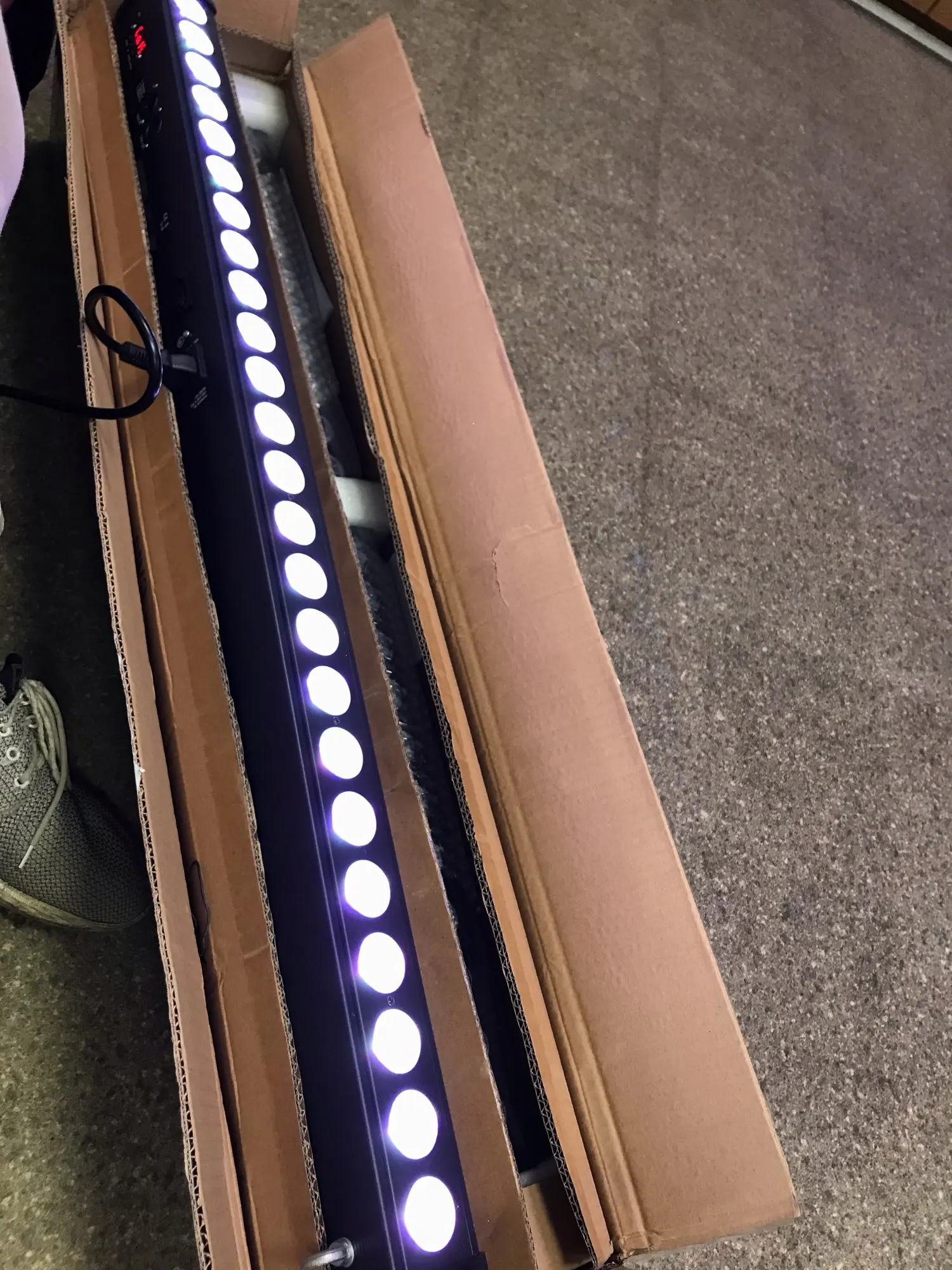 Напряжение: AC110-240V,50-60 Гц Мощность: 96 Вт Светодиодный: 24X4W RGBW 4IN1 Угол луча: 35 градусов Диммер: 0-100% Линейный диммер Режим управления: авто, звук, DMX512,Master-Slave Канал: 6/9/16/30/58CH Цвет: RGBW линейный цвет смешивания Размер: 1050*105*80 мм Вес нетто: 4 кг Вес брутто: 4,5 кг