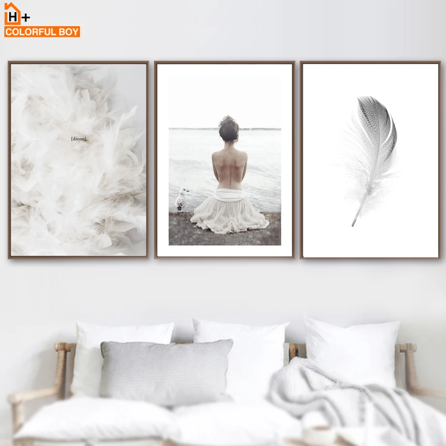 COLORFULBOY Девушка перо скандинавские плакаты и принты настенное искусство холст живопись холст картины для украшения гостиной