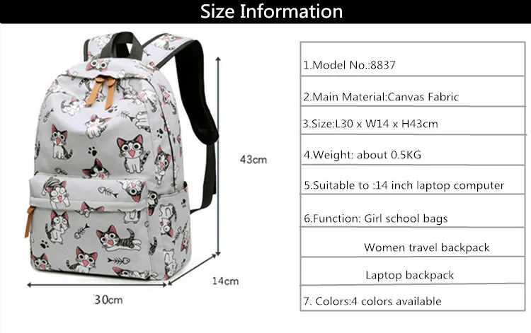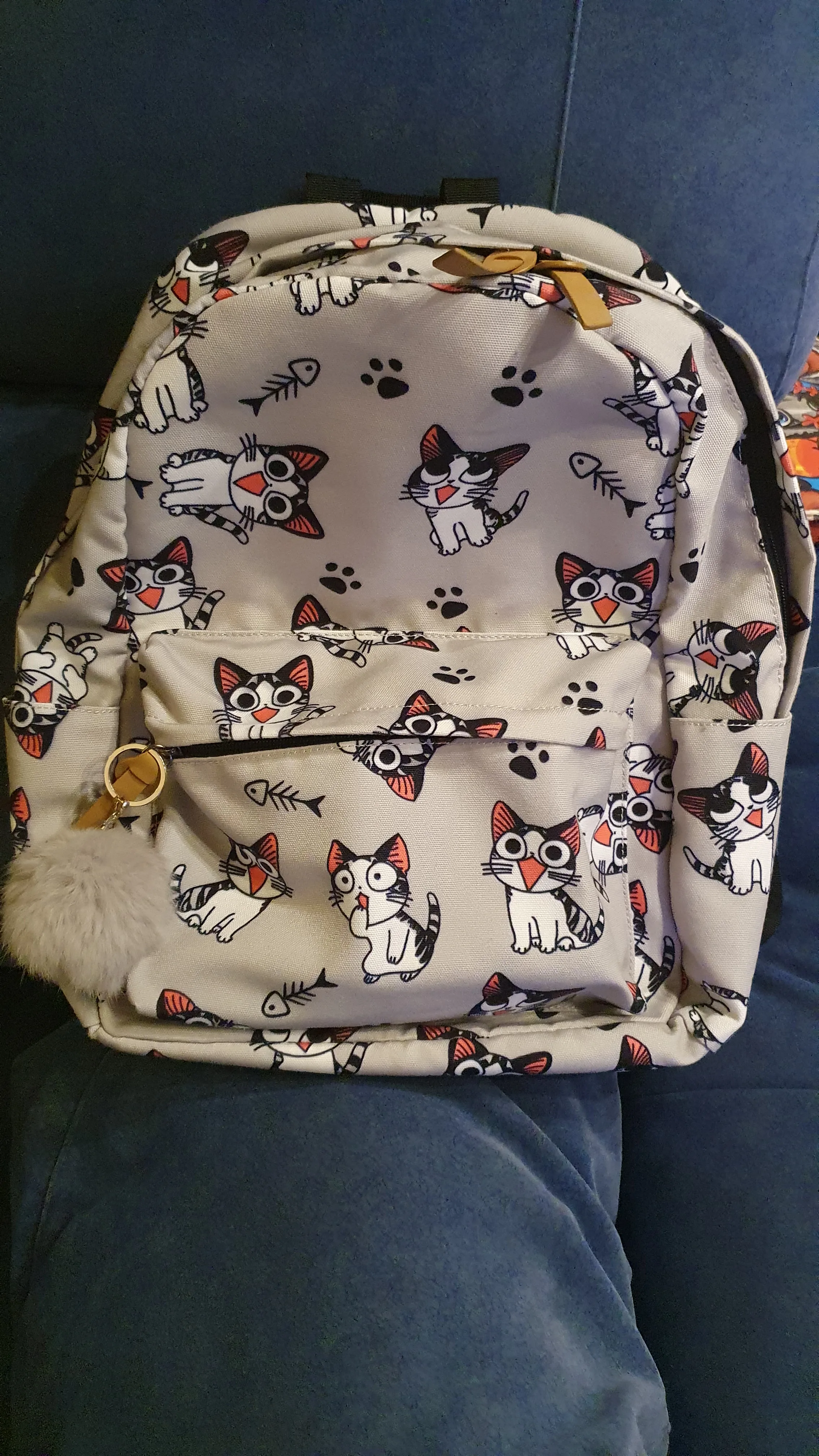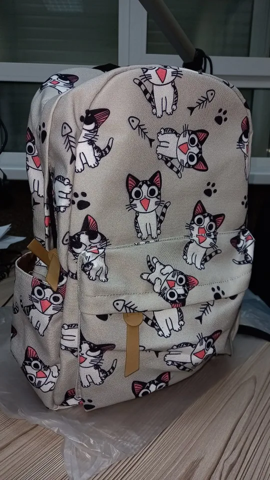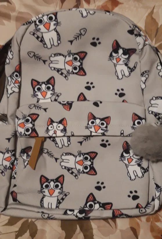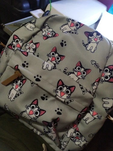 Очень хорошее качество рюкзака, он усилен внутри, так что он выглядит жестким. Идеальный размер, потому что школьные книги идеально подходят. Ваш принт отличный. Доставка занимает всего 13 дней. Я полностью рекомендую!