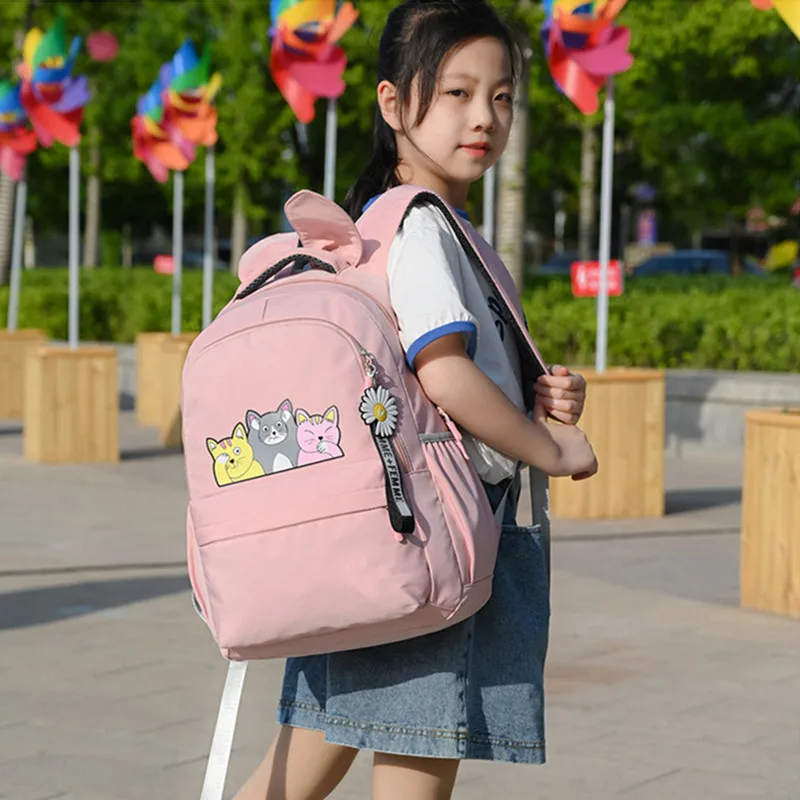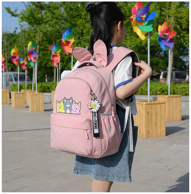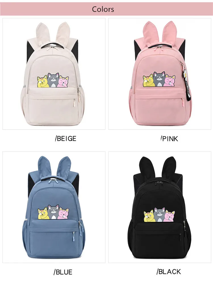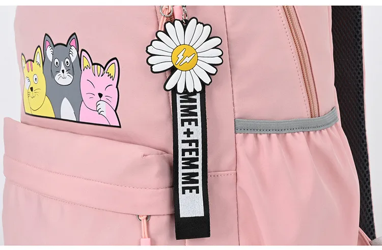 Женский тканевый рюкзак Fengdong, черный школьный рюкзак для девочек-подростков, с принтом в виде кошек, осень 2019