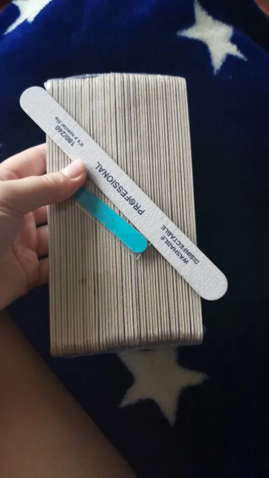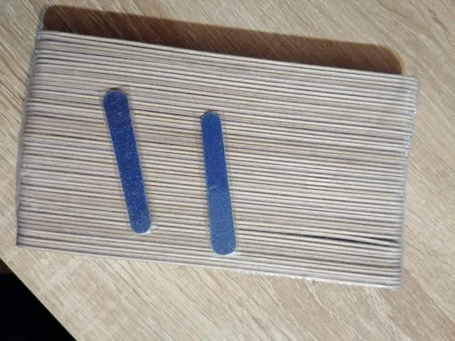 Пришли за месяц. Заказывала 2 упаковки. Цена приемлемая. Ровно 50 шт в упаковке. Обращайте внимание на абразив 180/240. Тонкие на деревянной основе. Не сильно гнутся при опиле. Хорошо подойдут для натуральных ногтей, для моделирования - не очень.