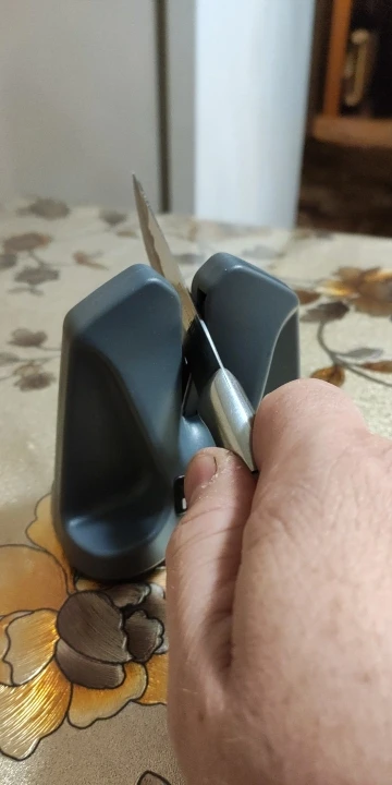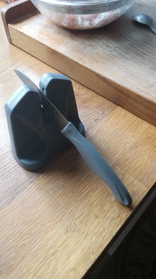 Точилка достаточно хорошая. Точит просто привосходно кухонные ножи. Все очень просто, быстро и легко получается. Только советую внимательно прочитать инструкцию на коробке, как нужно точить.