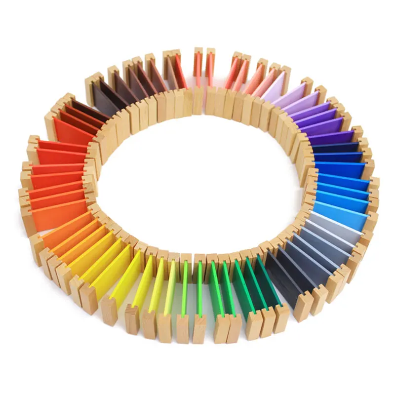 Цветные планшеты (коробка 3) учат ранжированию различных оттенков первичного и вторичного цвета s; Это также помогает улучшить порядок, самостоятельность и концентрацию.