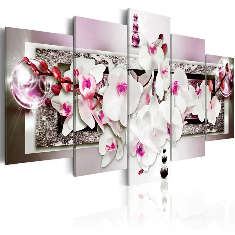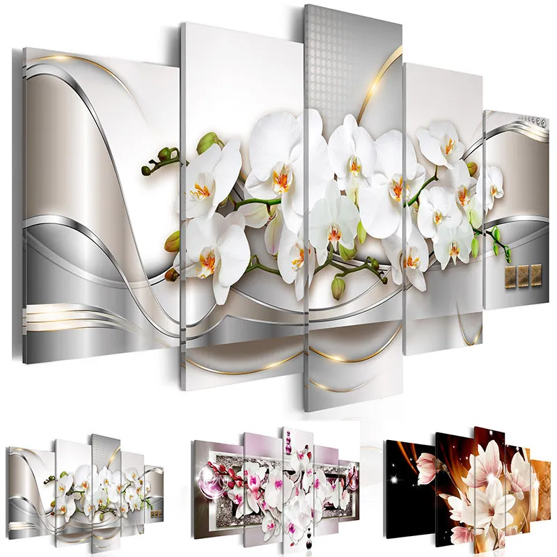Современная живопись на холсте, 5 панелей, орхидеи, цветок, пейзаж, холст, Модульная картина для стены, искусство, гостиной, домашний декор