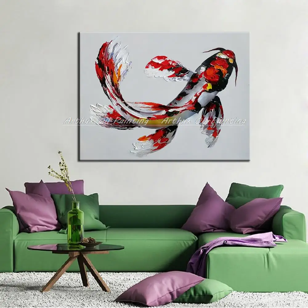 Arthyx художественная ручная роспись в виде рыбы, животных, масляная живопись на холсте, современное поп-искусство, абстрактные настенные картины для гостиной, украшения дома