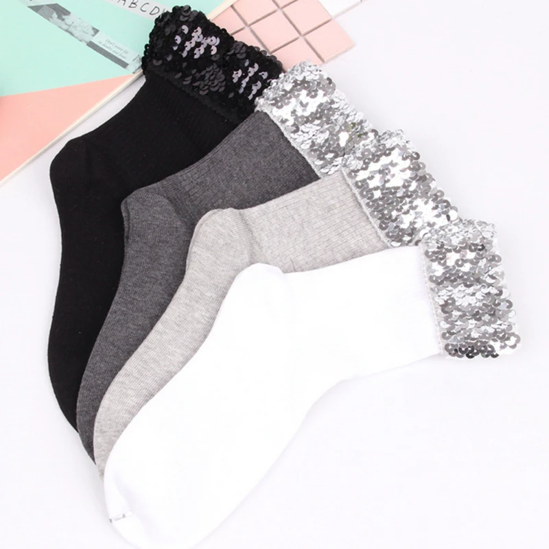 Носки женские короткие блестящие в стиле Харадзюку, модные хлопковые, в винтажном стиле, мягкие милые повседневные, с бусинами