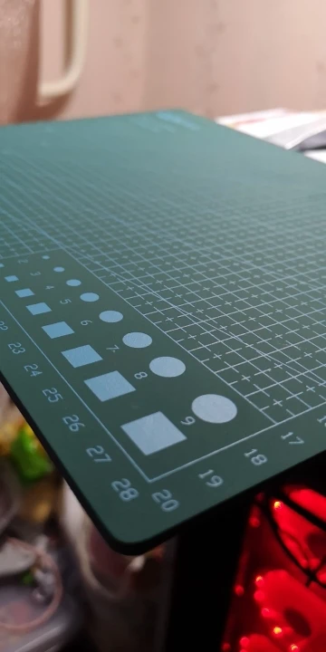 Отличный коврик! Жёсткий, с хорошей разметкой. Для моих ремонтных задач само то! Брала А3 , идеально чтобы разложить все удобно и выставить свет. Доставлен за 5 дней.