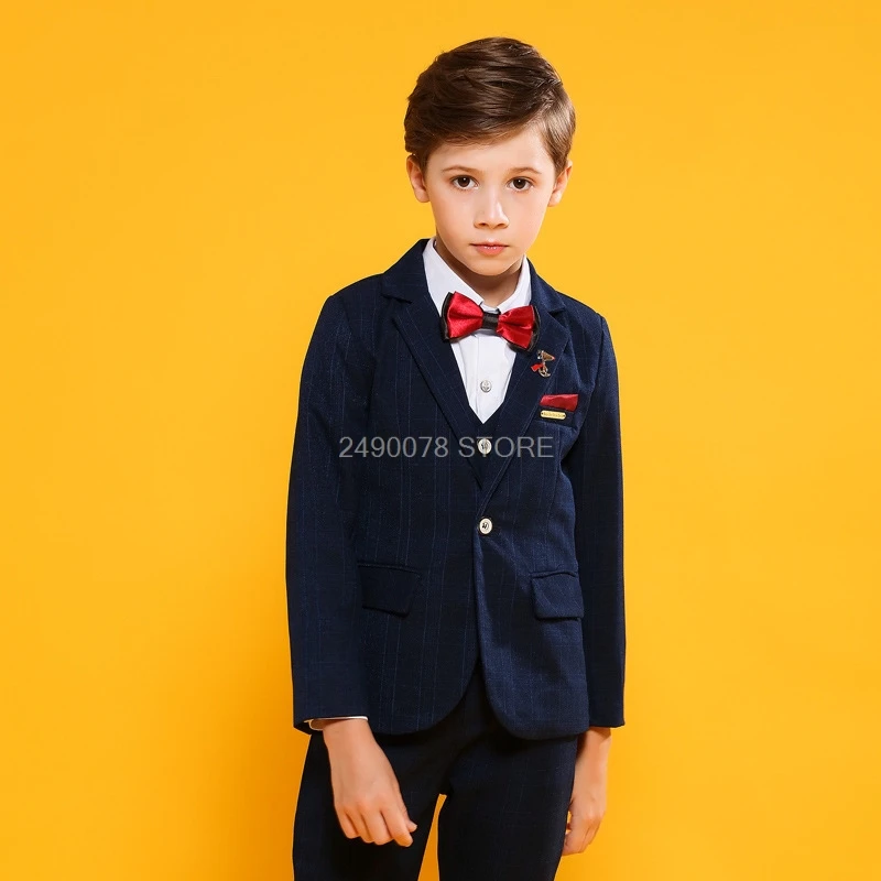Блейзер и штаны для мальчиков, в клетку, с цветочным принтом, смокинг, 3 шт.
