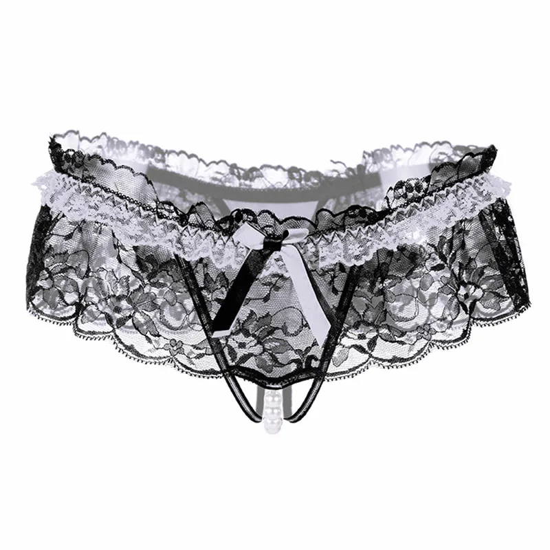 Женские сексуальные трусики, стринги и G-стринги, женское сексуальное нижнее белье, кружевное нижнее белье с бантом, прозрачные открытые трусики