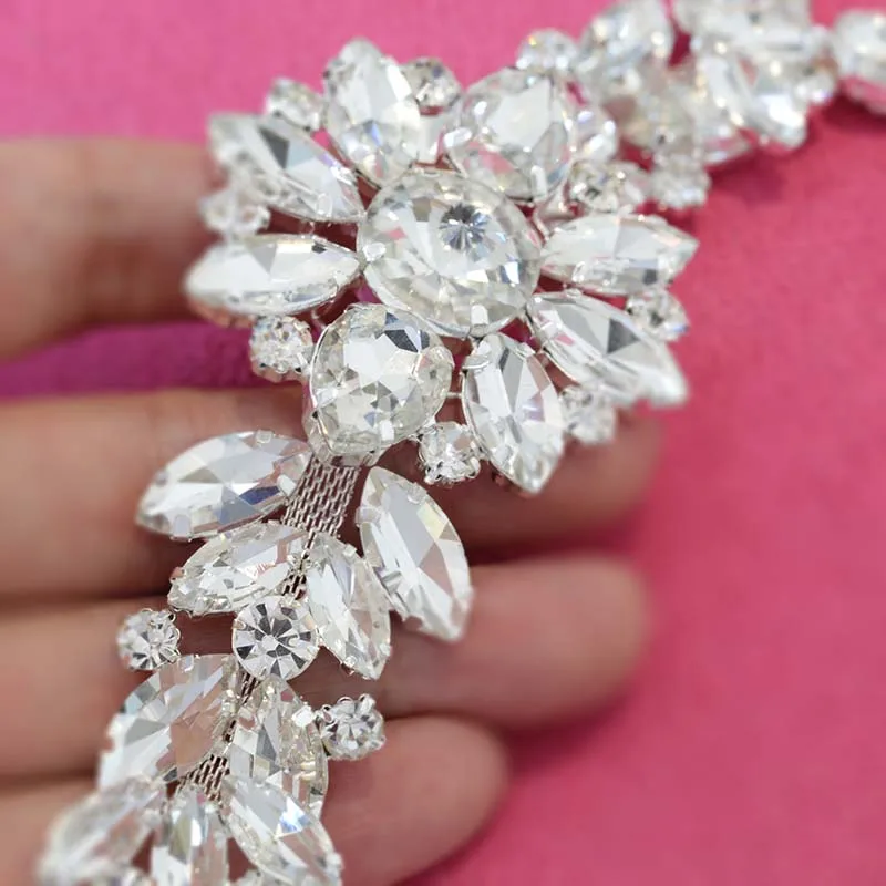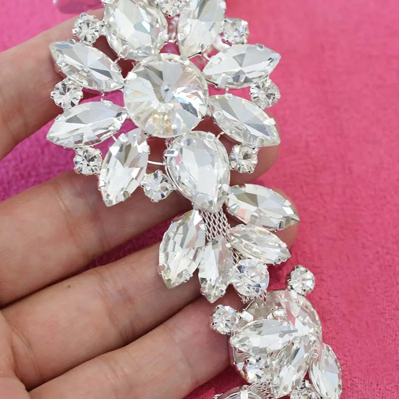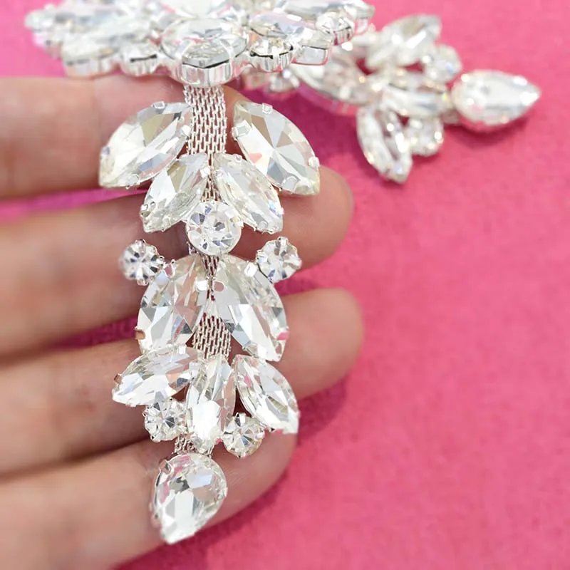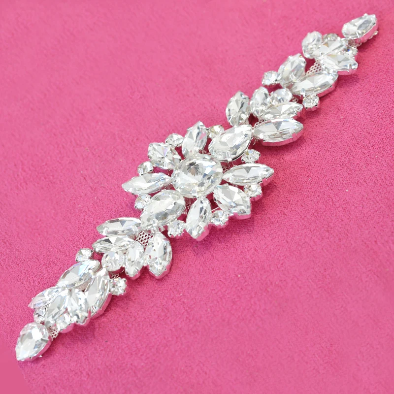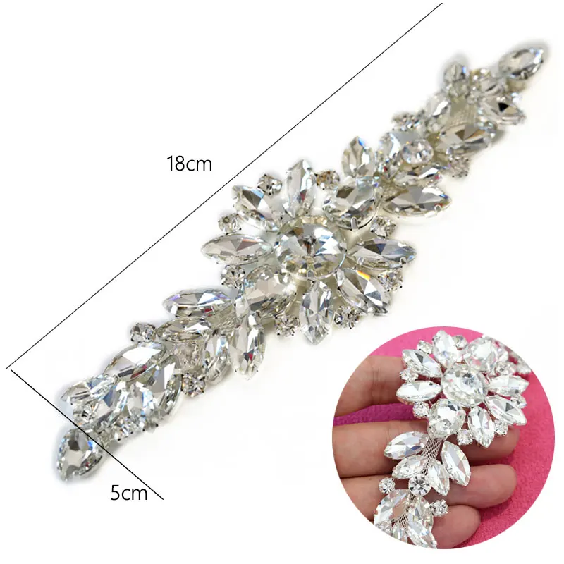 18x5 см Высокое качество стекло Пришивание стразы аппликация 1 шт. Серебряная основа стразы брошь искусственная кожа E7055