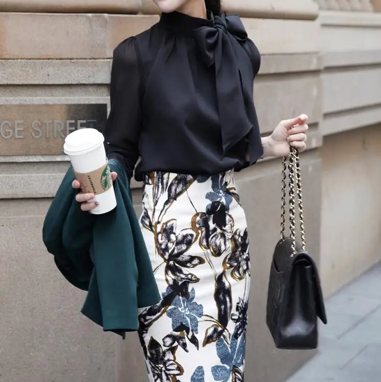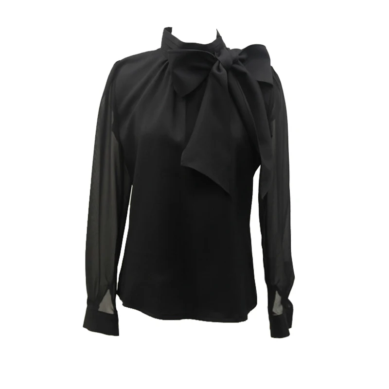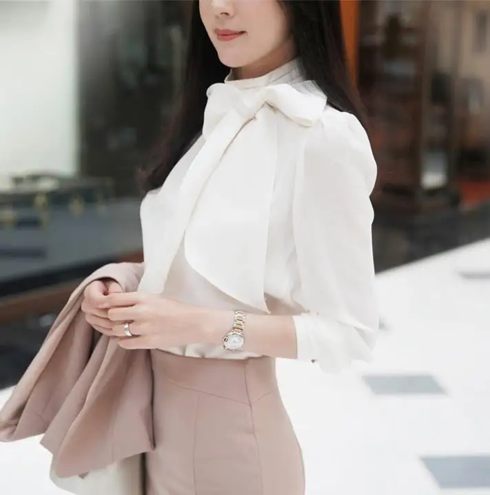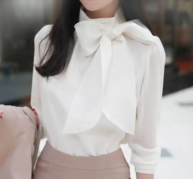 Новинка 2019, модные женские рубашки, однотонная элегантная женская блузка с бантом на воротнике и длинным рукавом, блузка, бесплатная доставка