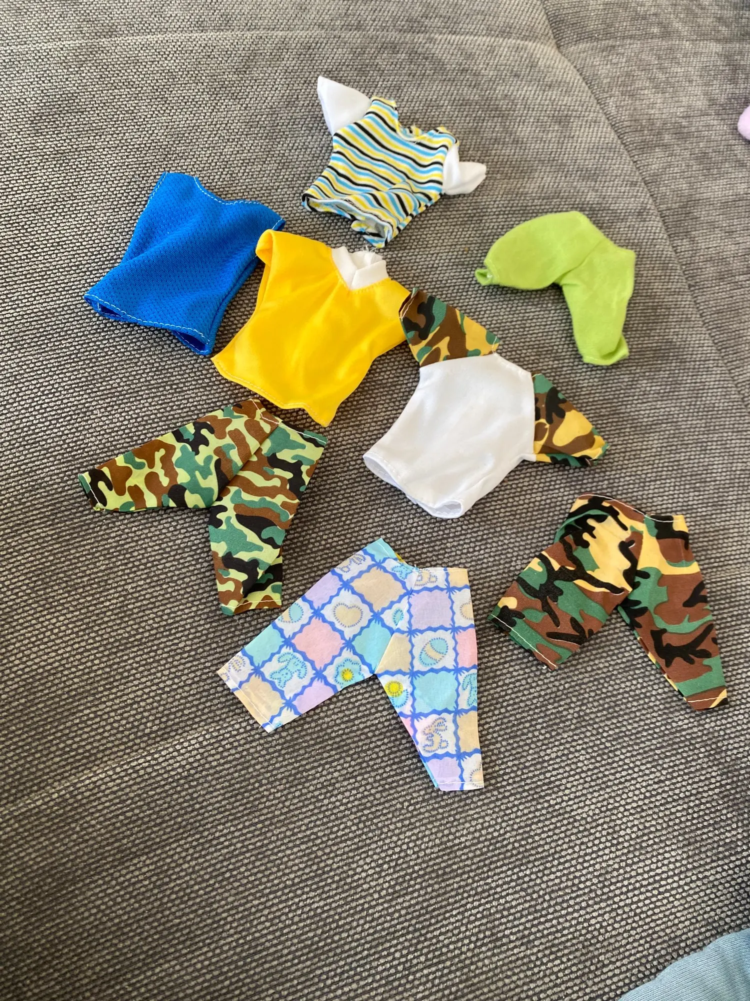 Очень удобно, когда объединяют посылки. Эту тоже объединили, и одежда пришла очень быстро! Сама одежда соответствует фото, все в наличии. Качество не супер, но играть детям норм. Так что рекомендую и продавца и товар.