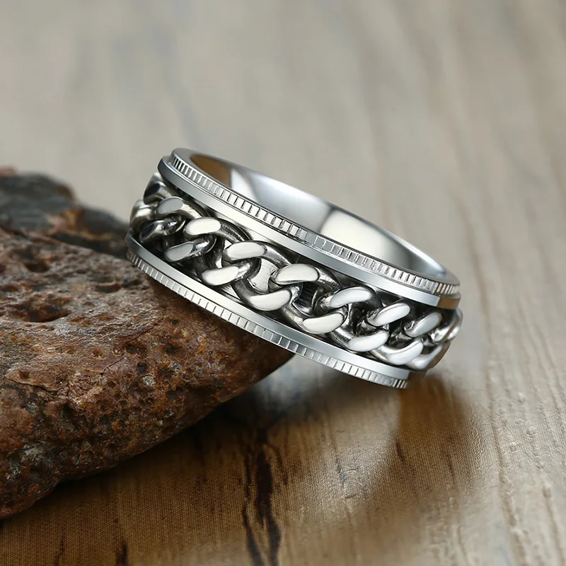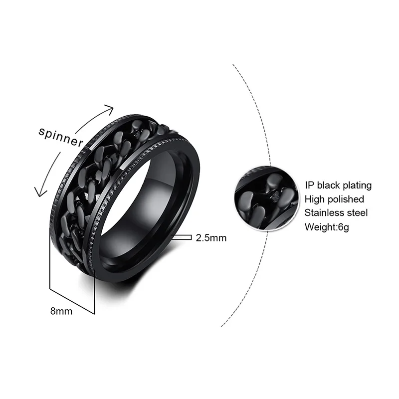 Мужские черные кольца-Спиннеры 8 мм с синим панцирным кольцом, обручальное кольцо из нержавеющей стали, мужские ювелирные изделия