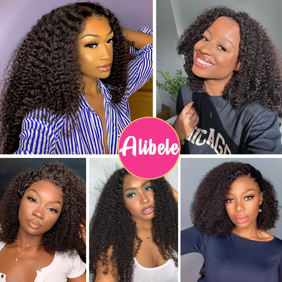 Парик Alibele Mogolian, кудрявый, кружево спереди, человеческие волосы, 150 плотность, 13х4, кудрявые человеческие волосы, фронтальная, длина 10-24 дюйма