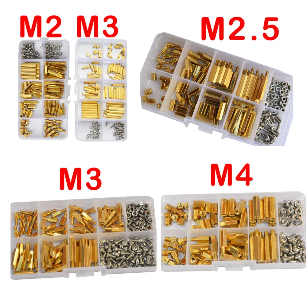 M2 M2, 5 M3 M4 Шестигранная латунная стойка, наружная и внутренняя резьба, Проставка, винтовая гайка, PCB Материнская плата, набор 240 шт.