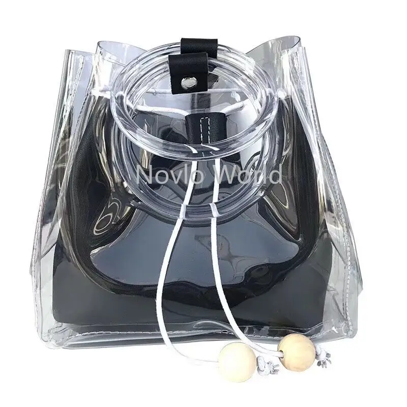 4-10 штук, Прозрачная черная круглая полимерная ручка 9 см 10 см, Женский акриловый Летний Пляжный кошелек, вязаные сумки с круглой ручкой