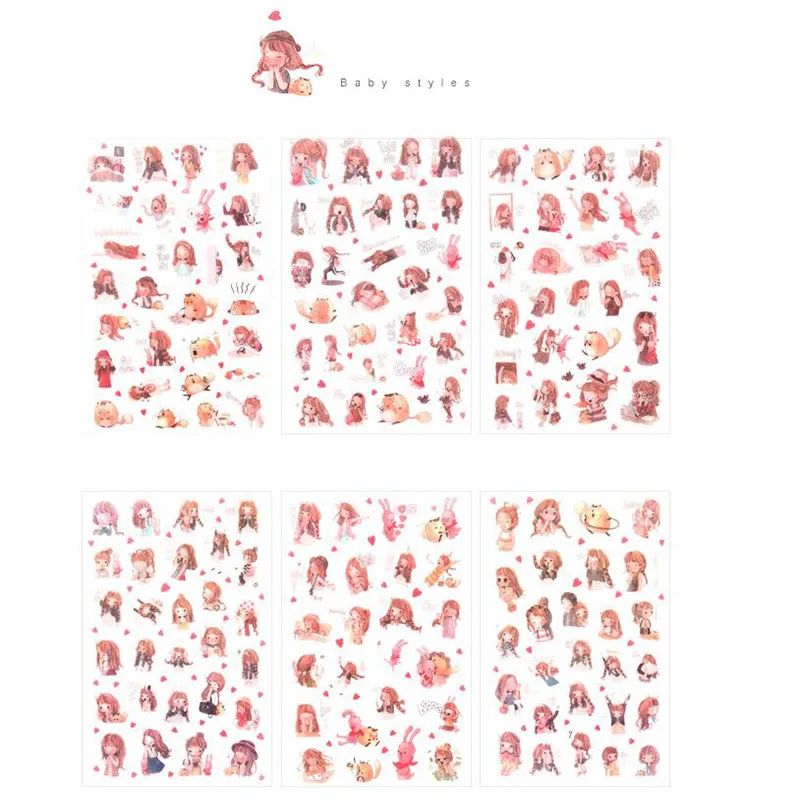 6 листовлот креативные милые девушки ПВХ наклейки сделай сам многоф...