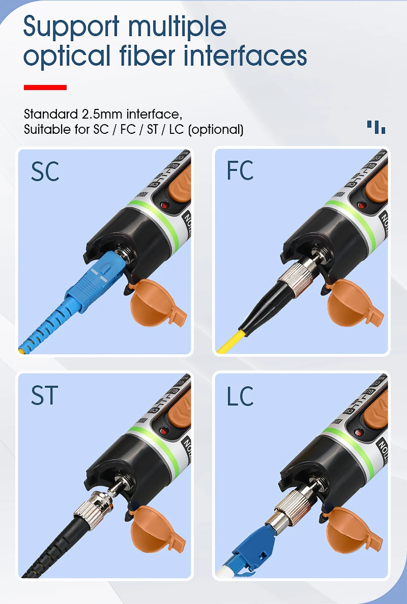 Тестер волокна с красным источником света COMPTYCO, Визуальный дефектоскоп, совместим с разъемом st fc sc, 30 км20 км10 км5 км