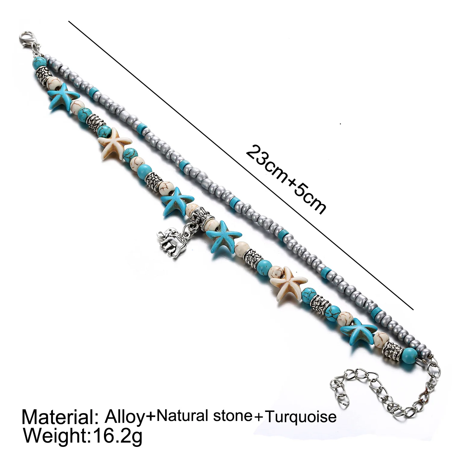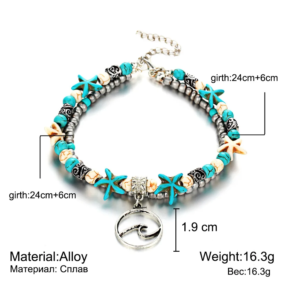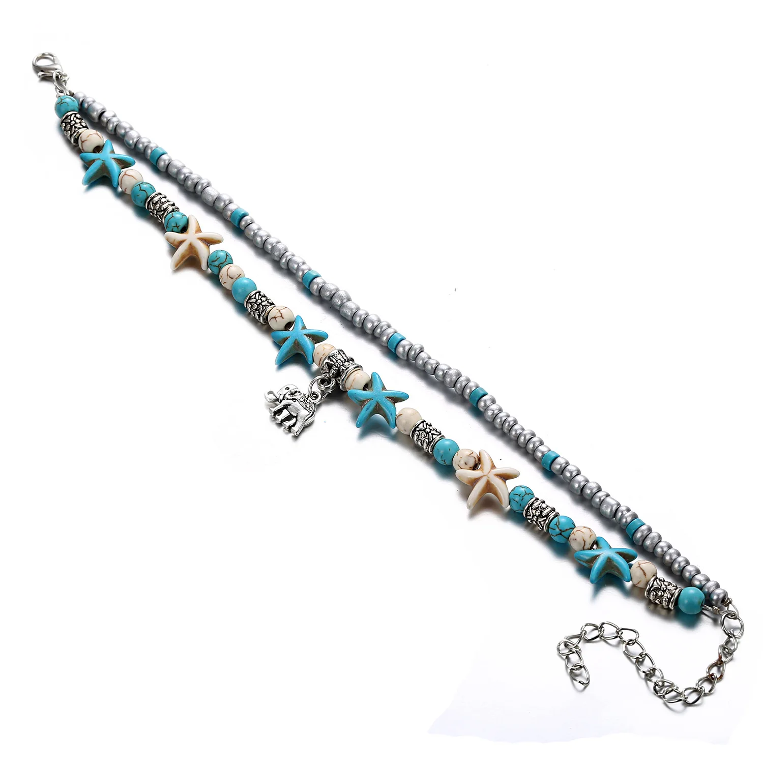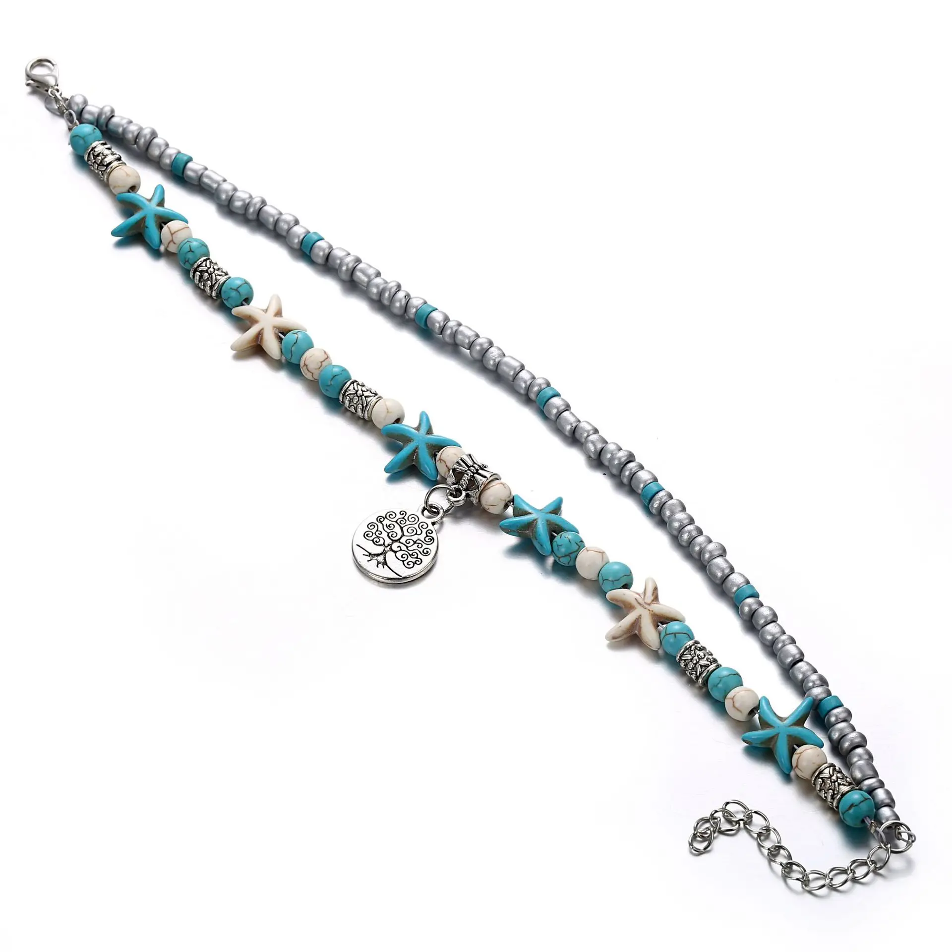 Браслет на ногу Женский, модный винтажный браслет с бусинами в виде ракушек и морских звезд, Ювелирное Украшение в стиле бохо