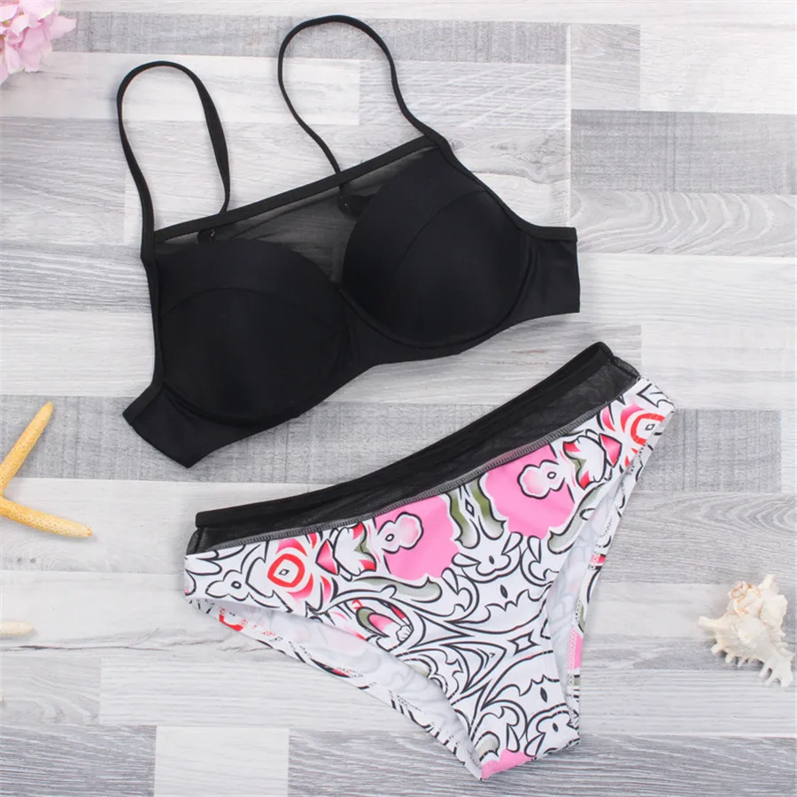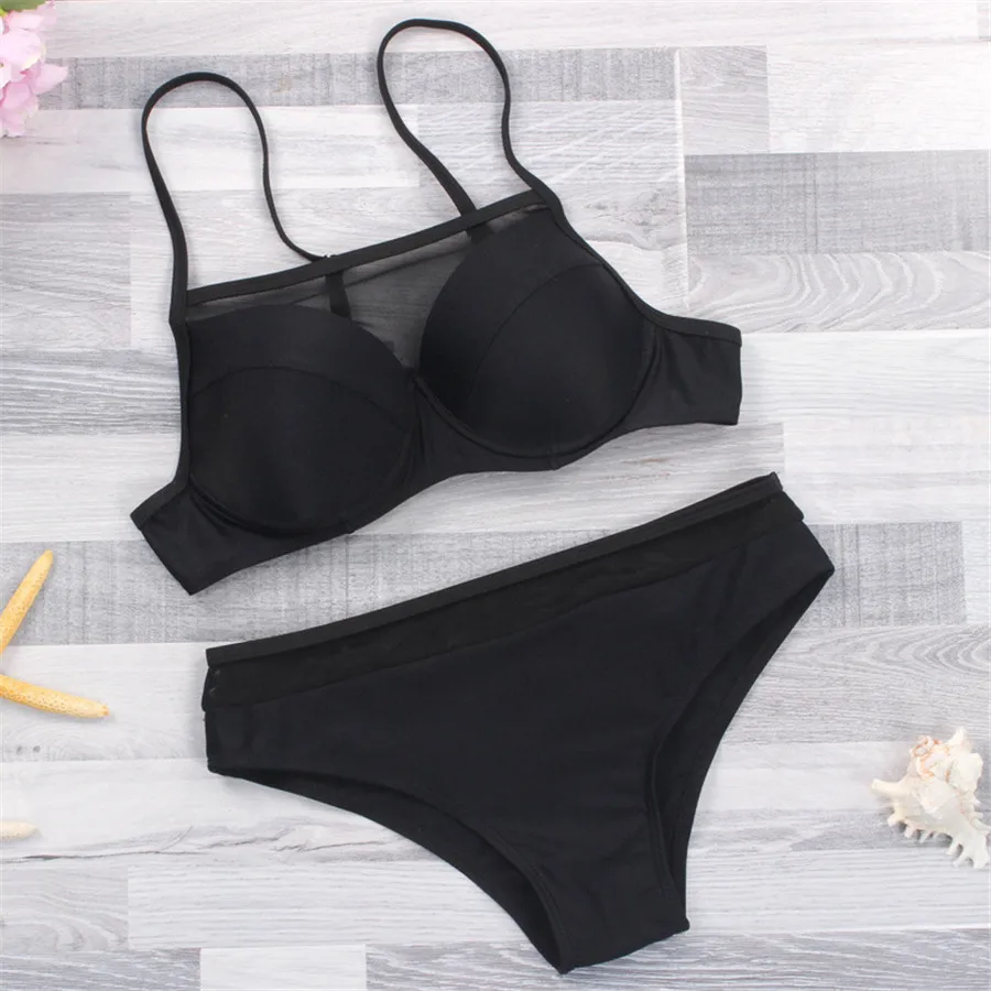 Купальник YICN женский сетчатый, пикантный однотонный купальник с чашками пуш-ап, халтер, укороченный топ в стиле пэчворк, черный купальный костюм, 2018