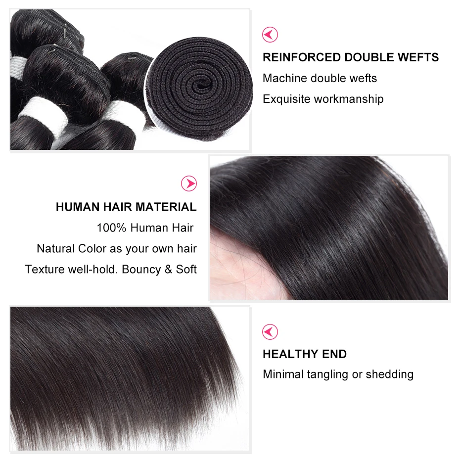 Прямые волосы Gabrielle, 3 пряди с закрытием, натуральный цвет, бразильские волосы, пряди с закрытием, 100% человеческие волосы для наращивания