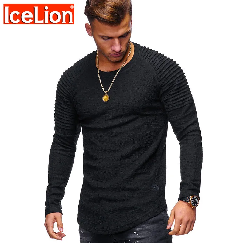 IceLion 2021 новая весенняя Однотонная футболка для мужчин с длинным рукавом и круглым вырезом, хлопковая футболка для мужчин Тонкий полосатый фитнес повседневное t рубашки для мальчиков Человек