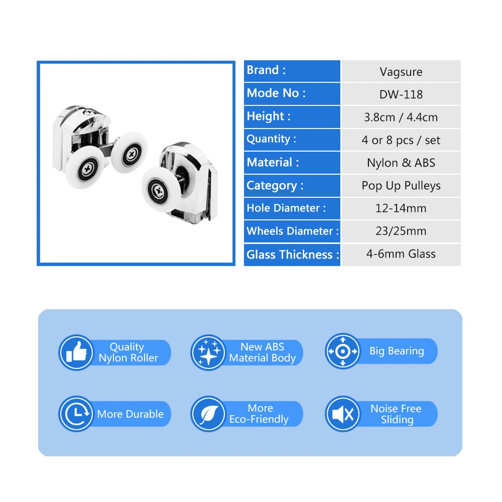 Vagsure 4 шт.-8 шт.компл. Двойной верхний и одинарный нижний хромированный цинковый сплав раздвижные шкивы для душевой кабины колесные дорожки дверные ролики