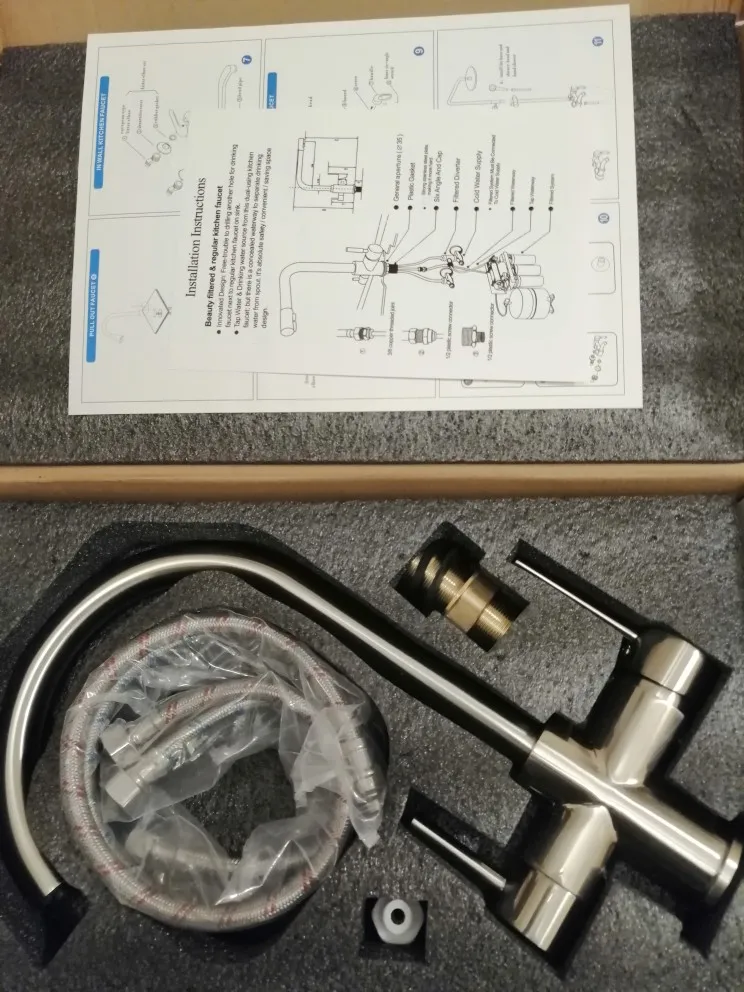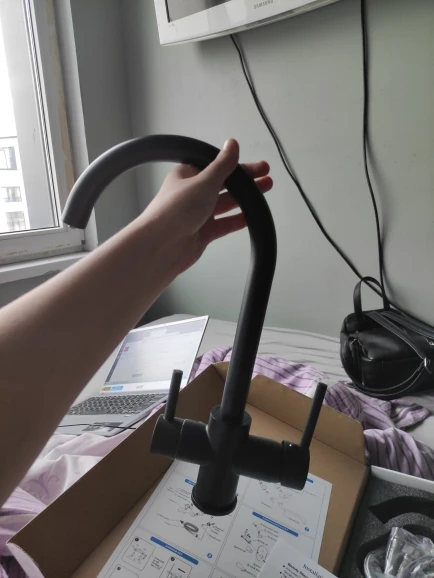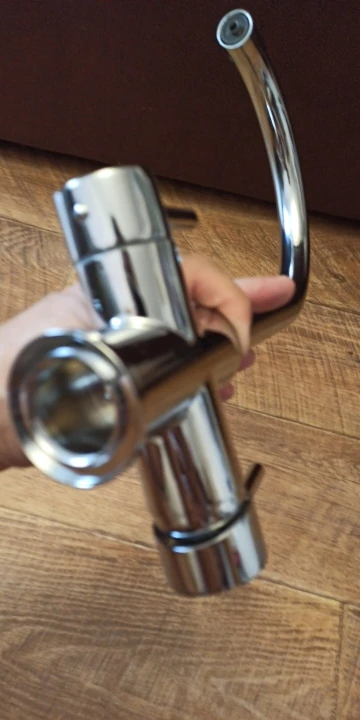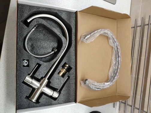 Отличный смеситель за эти деньги. Быстрая отправка (в Ростов со склада в московской области). Есть нюансы при установке, которые важно знать перед покупкой: 1. Уплотнительная резинка между смесителем и раковиной слишком толстая (около 0.8-1 мм), соответственно при установке образуется зазор, в который в дальнейшем будет набиваться грязь. Элегантного решения я не нашел, тк ни одна резинка в сантехнических магазинах не подошла. Пришлось комплектную резинку отрезать острым макетным ножом. 2. Гайка, которой крепится смеситель размером где-то на 34, соответственно обычным гаечным ключом закрутить не удастся (обычно размеры ключей до 32 мм). Получилось закрутить разводным ключом. Без ключа плотно закрутить смеситель не получится. 3. Вначале устанавливается смеситель и закручивается гайка, а потом снизу накручиваются шланги. В комплектном шланге для фильтра внутри была какая-то пластиковая кругляшка, которая скорее всего являлась мусором. Обработка и цвет металла внутри крана так себе...