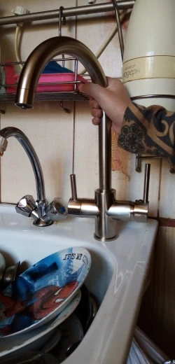 Классный кран, ждали с трепетом. Отличного качества, довольно тяжеловатый, без каких косяков. На фото кран просто поставлен, чтобы посмотреть подходит или не подходит, по цвету подошёл. Толкто один минус нашли, что придётся по учатся с его установкой, так как не влазит крепление в отверстие для установки крана ( на последнем фото)