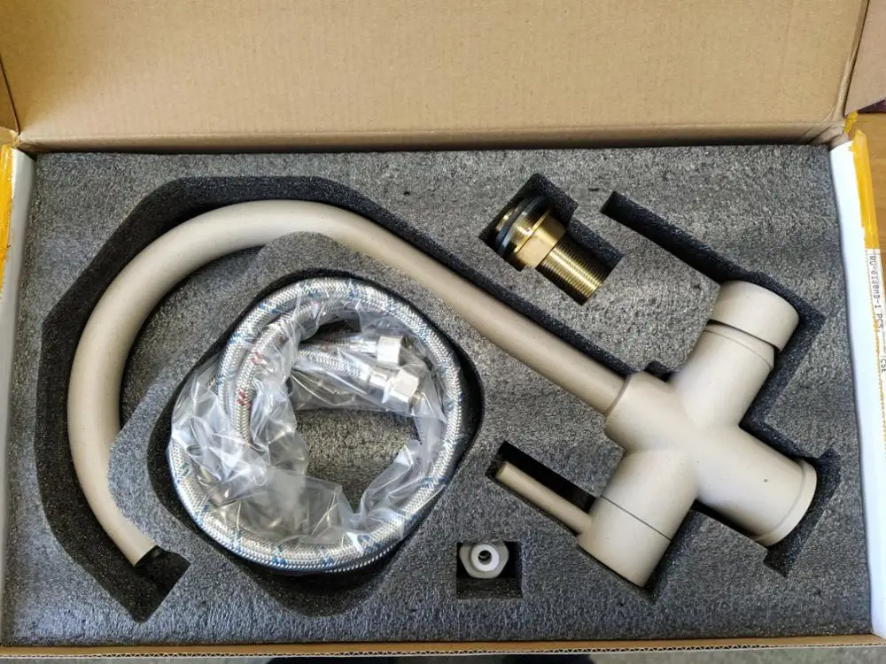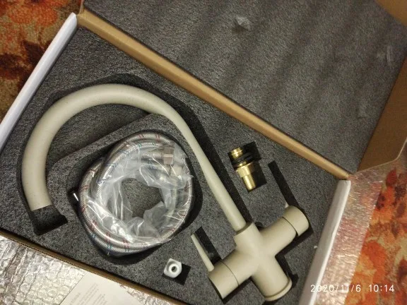 Получила быстро, упакована посылка очень хорошо, сам смеситель в коробке, впору можно дарить, заказывала бежевый, но он больше цветом в серость уходит. Немножко подрастроилась. К раковине подошел без заморочек. Кран тяжелый. Но... у меня глубокая и широкая раковина и всё равно брызги летят во все стороны. Ах и увы.