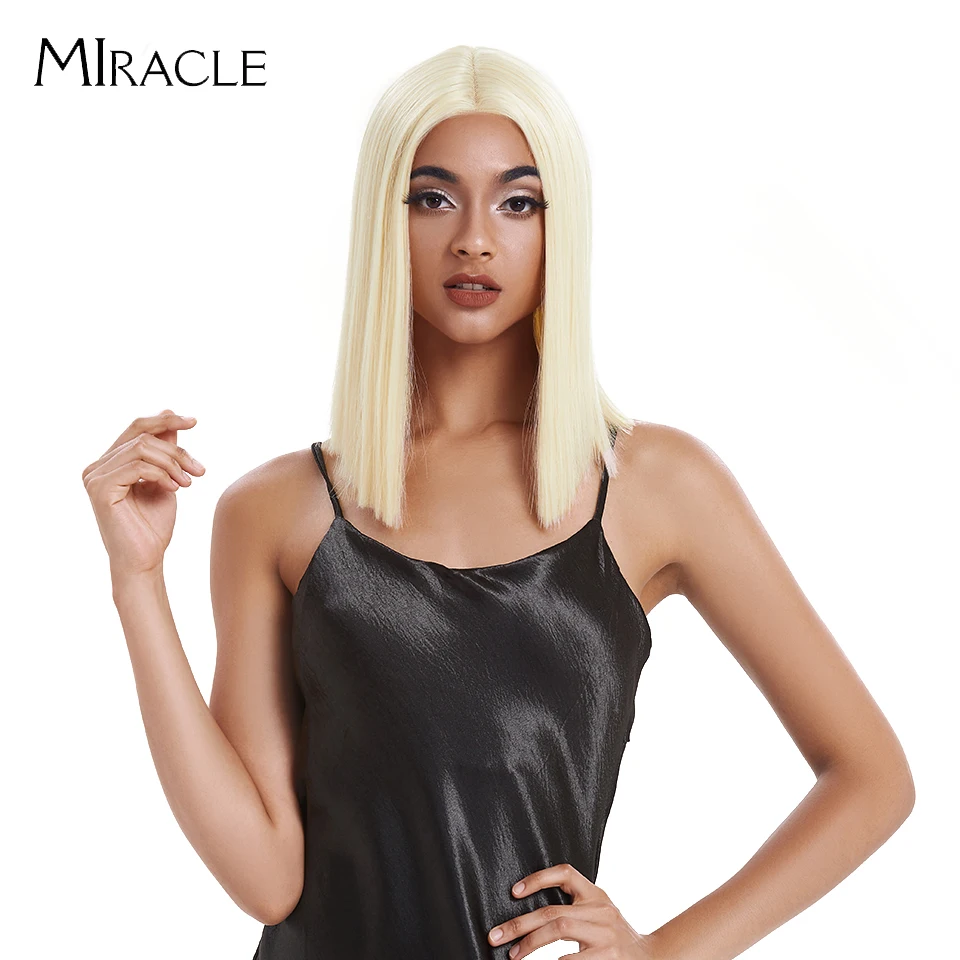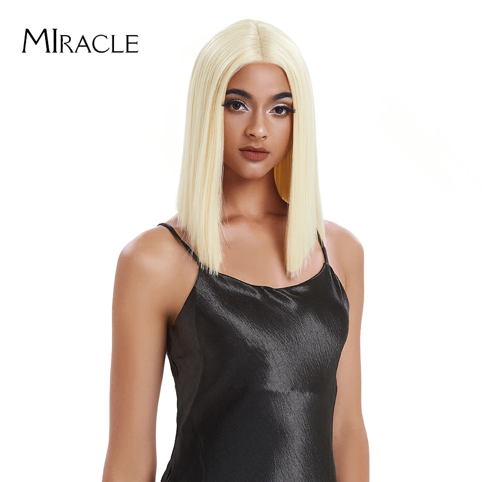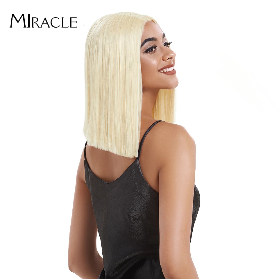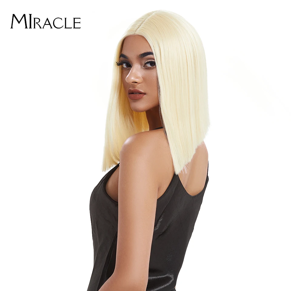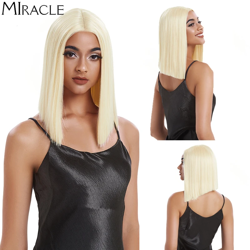 Волшебный короткий синтетический парик для женщин, парик с T-образной частью, с прямыми волосами, 14 дюймов, синтетический, с эффектом омбре, блонд, розовый, для косплея