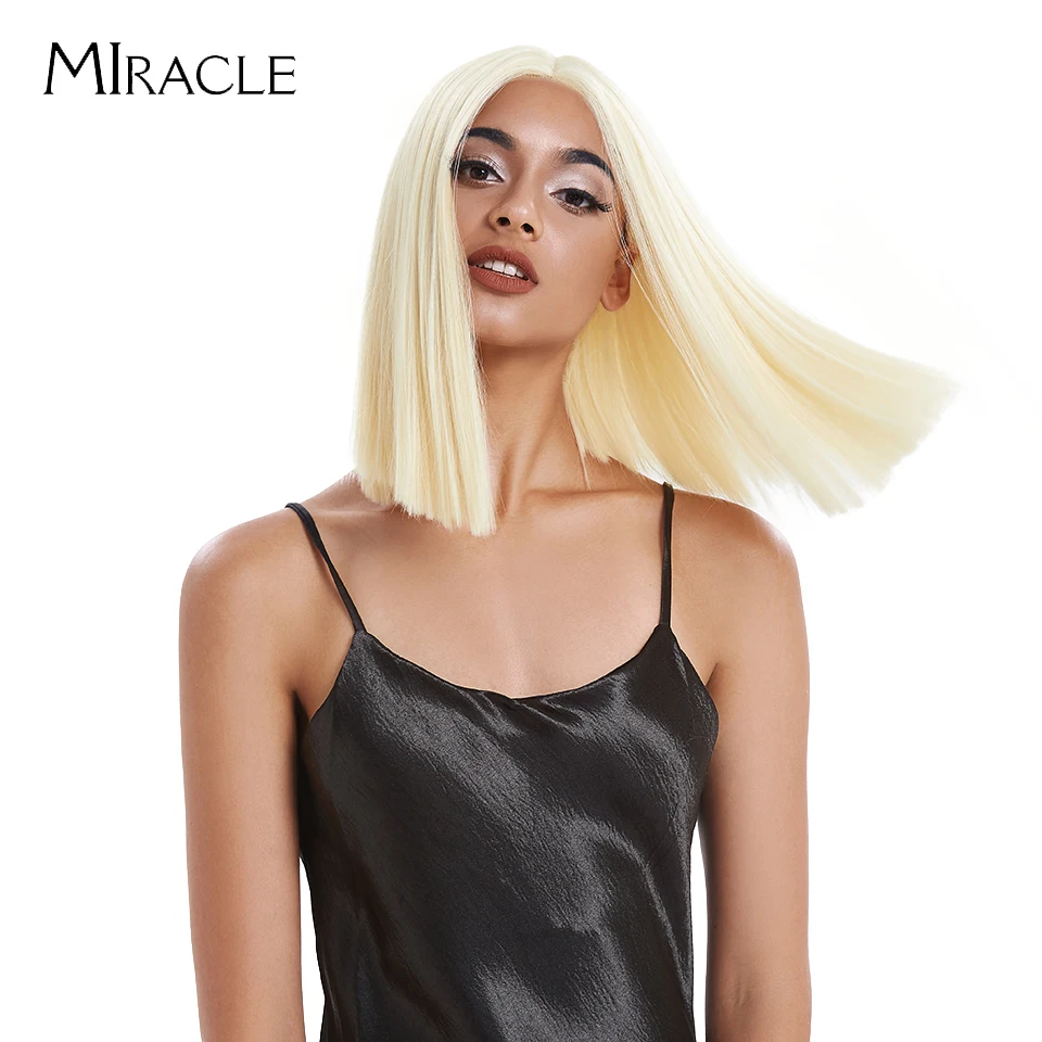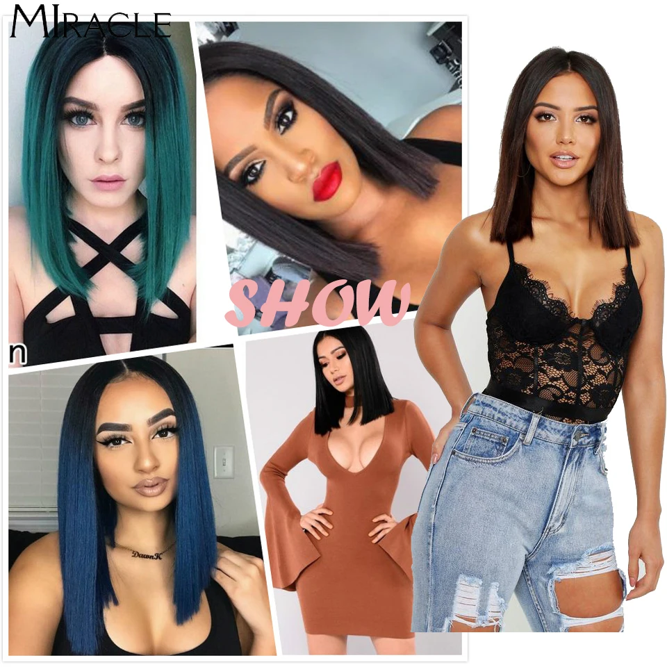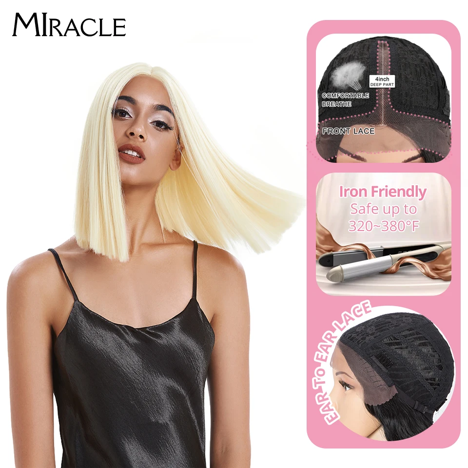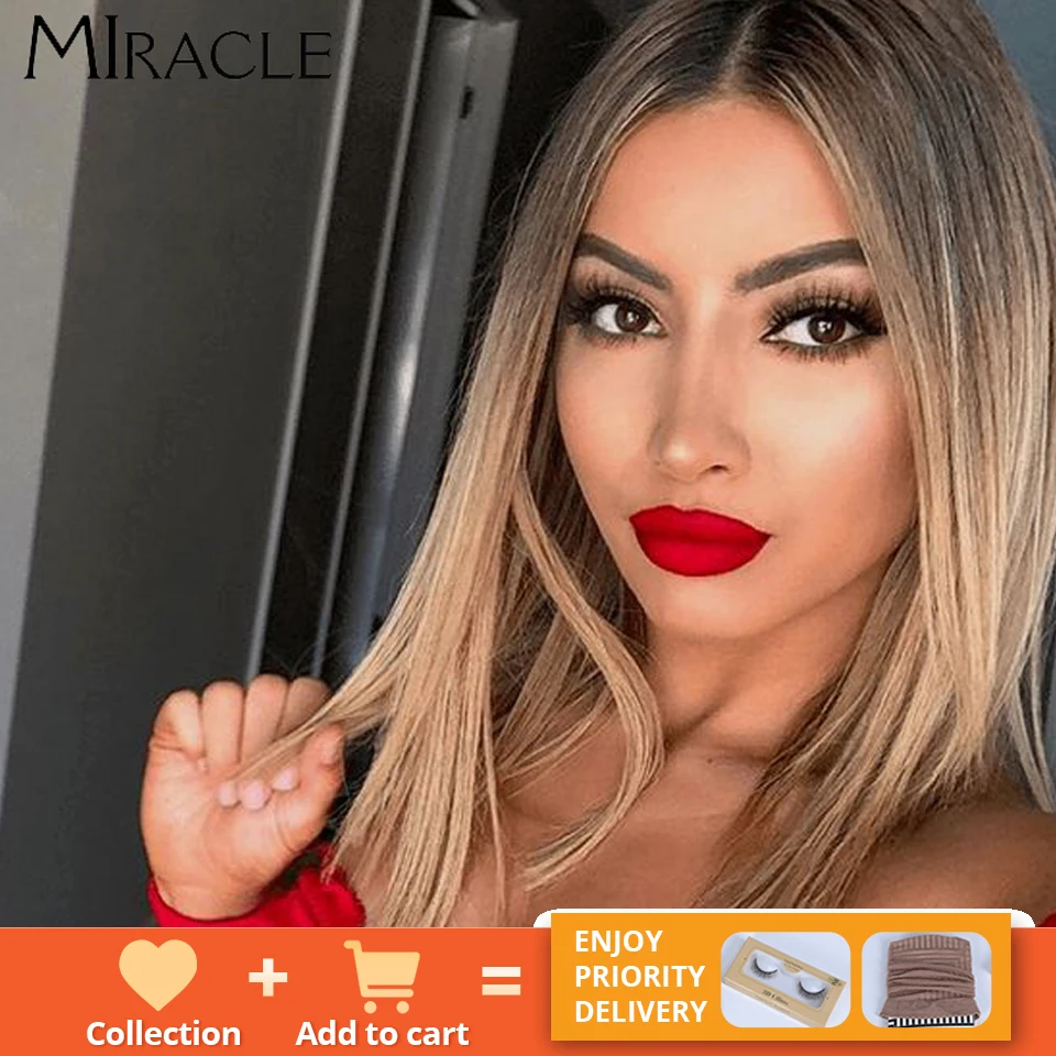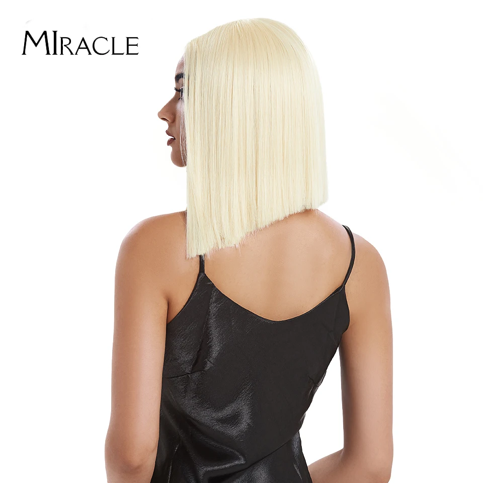 Волшебный короткий синтетический парик для женщин, парик с T-образной частью, с прямыми волосами, 14 дюймов, синтетический, с эффектом омбре, блонд, розовый, для косплея