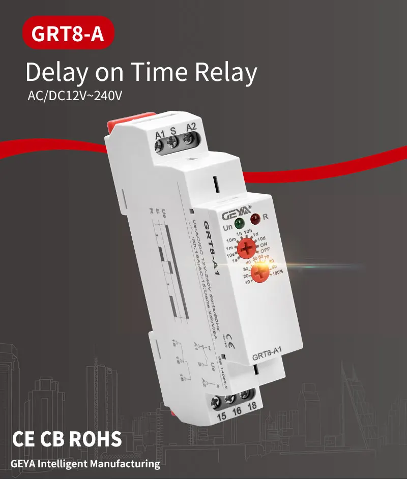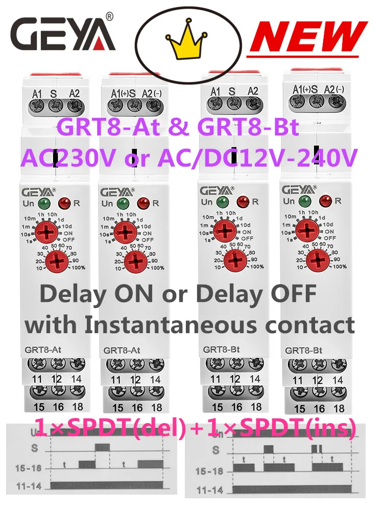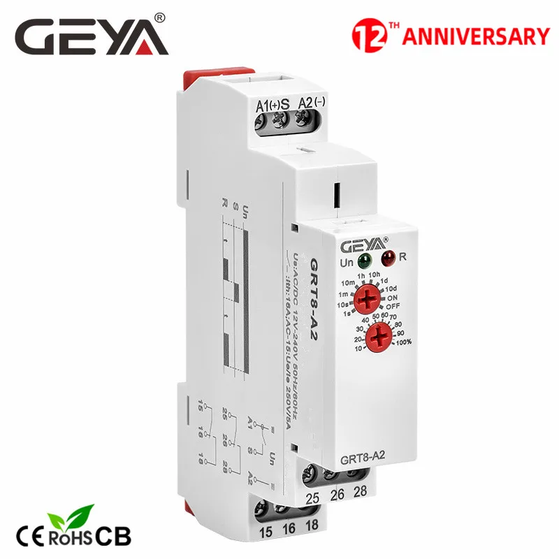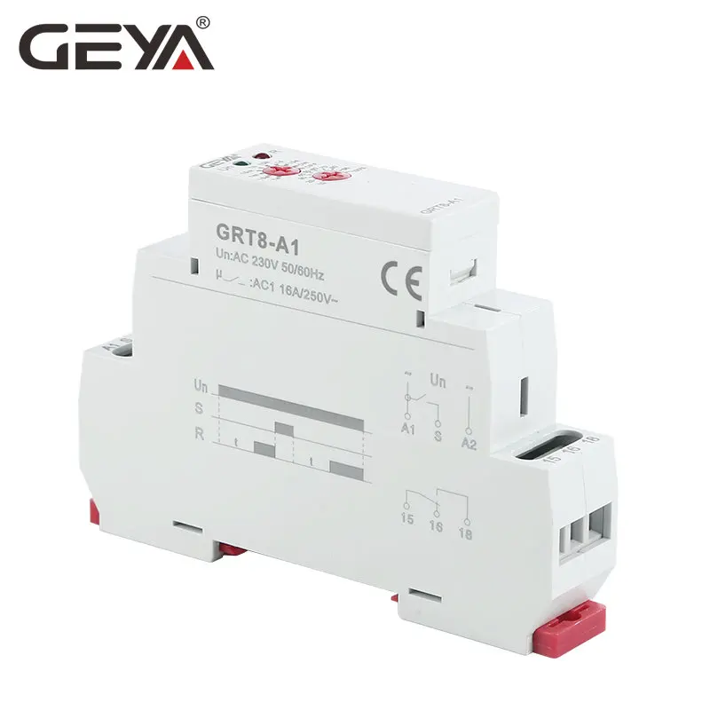 Электронное реле времени GEYA GRT8-A, 16 А, SPDT на реле таймера задержки, 12 В, 24 В, 220 В, DIN-рейка, AC230V или ACDC12-240V