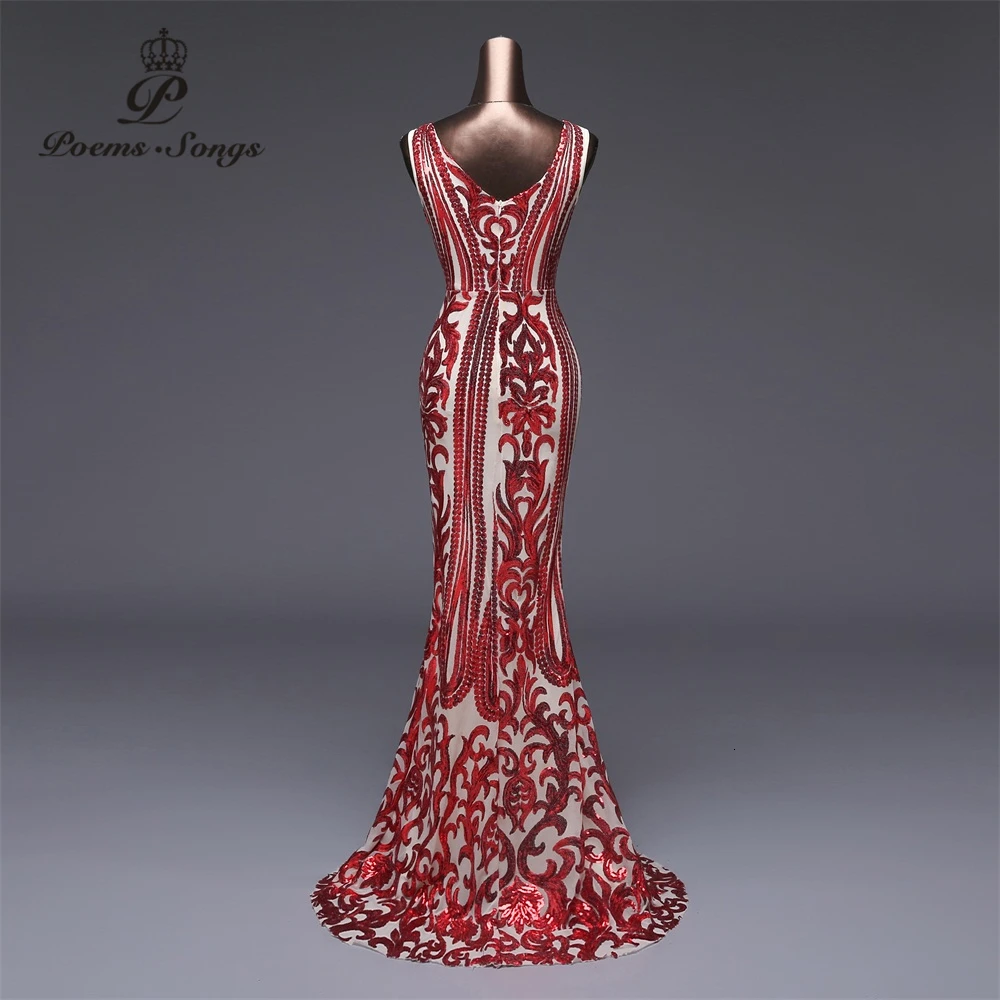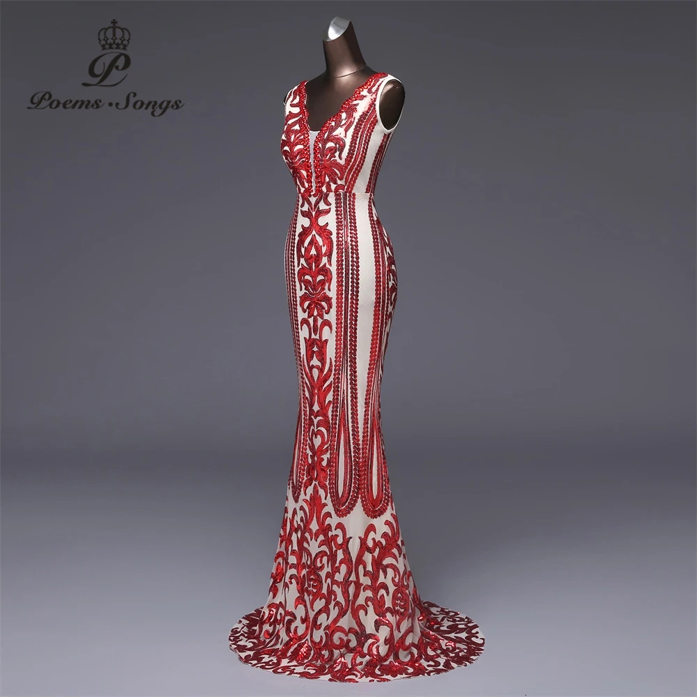 Вечернее платье Poems Songs, длинное вечернее платье, роскошное красное платье с блестками, длинное платье для выпускного вечера