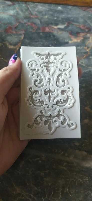 Отличный молд, не совсем плоский, глиной можно будет по работать. Размер по крайним точкам 8,4х4,6см приблизительно. Есть в двух местах тонкие линии, но и их можно проработать глиной, я делаю холодным фарфором. И глиной и холодным фарфором можно будет по работать с этим молдом.