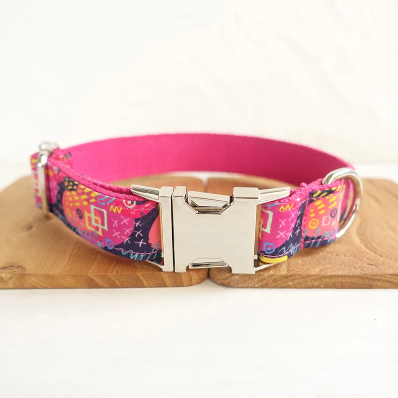 Розовый Граффити полиэстер ошейник для собак с лазерной гравировкой индивидуальная Пряжка Прямая поставка доступно