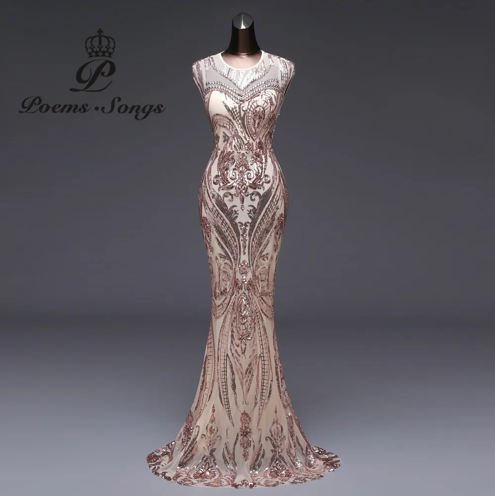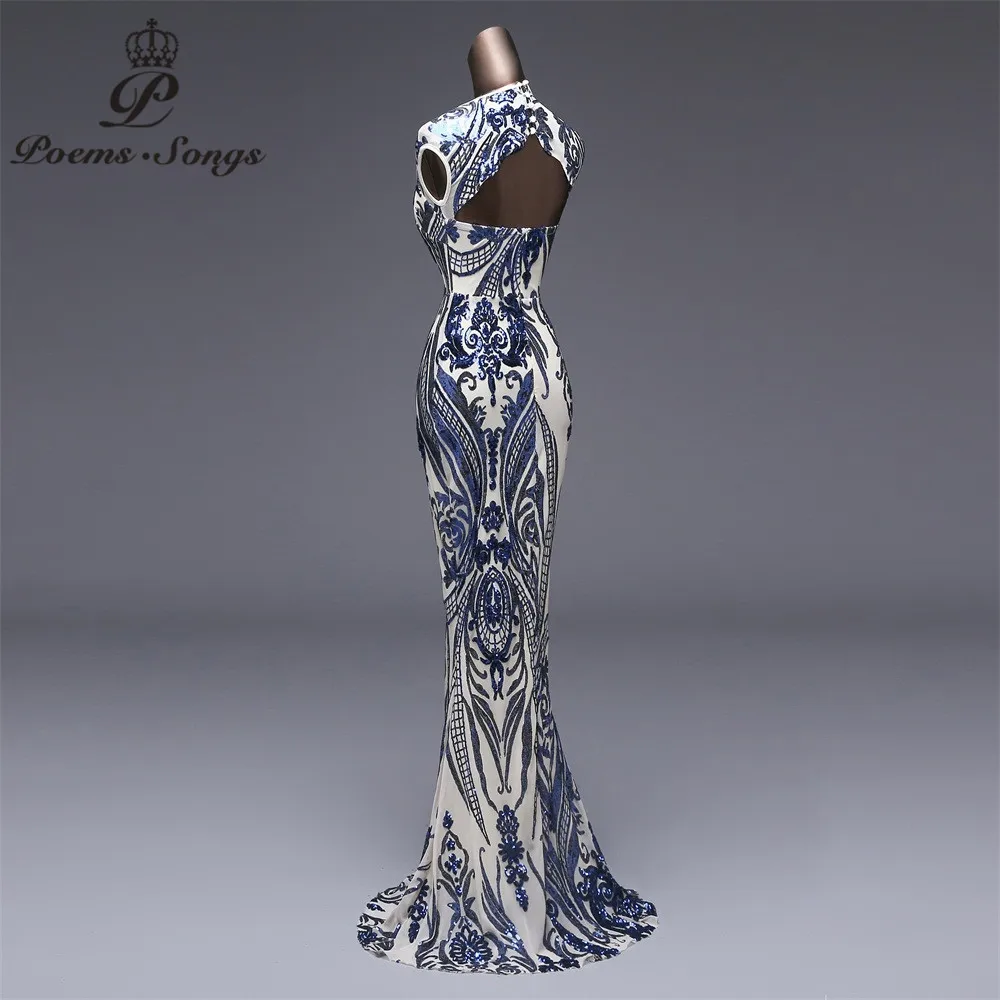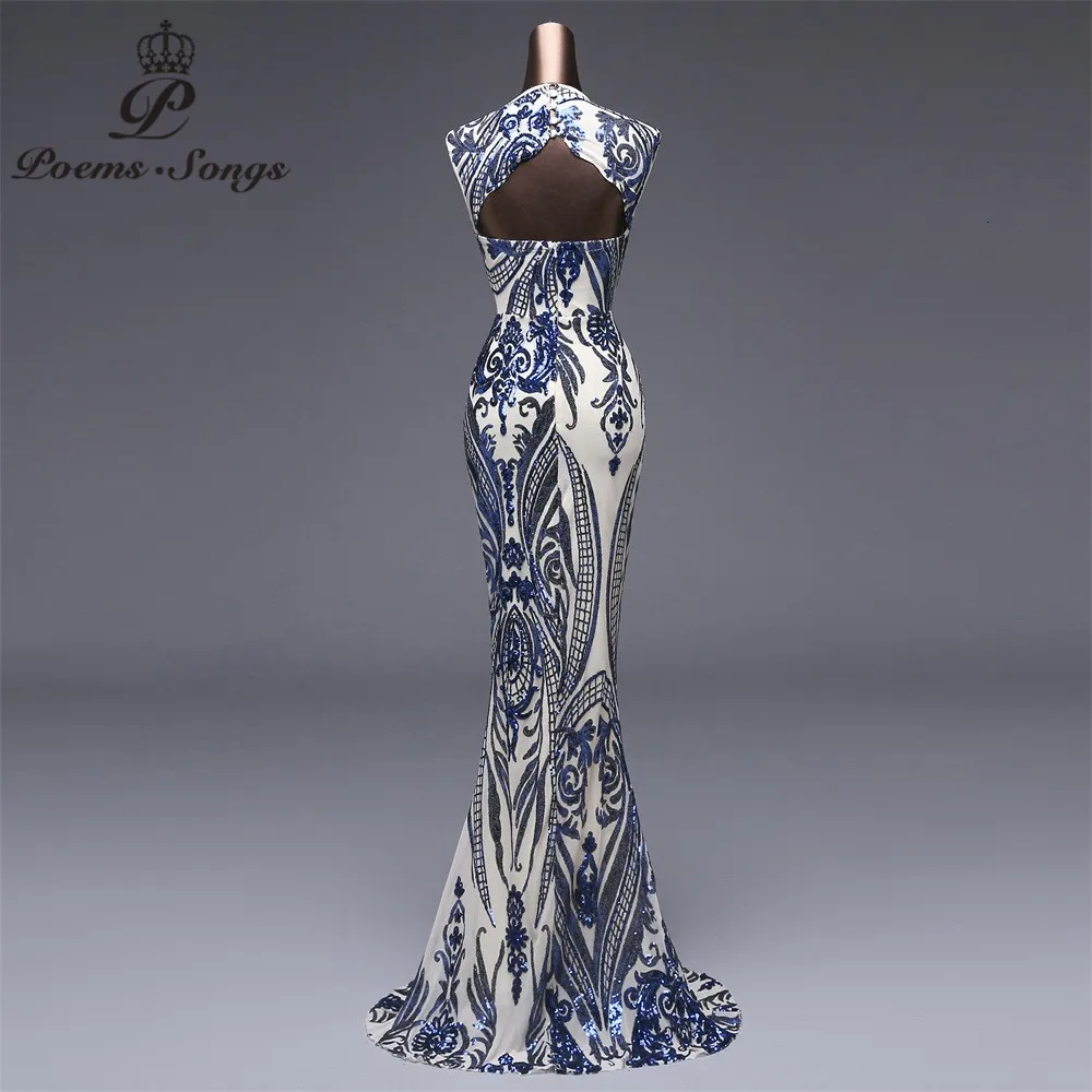 Женское вечернее платье с блестками, синее длинное платье для выпускного вечера
