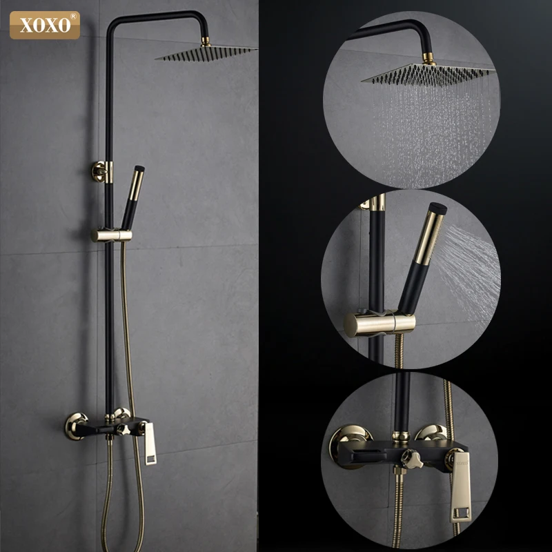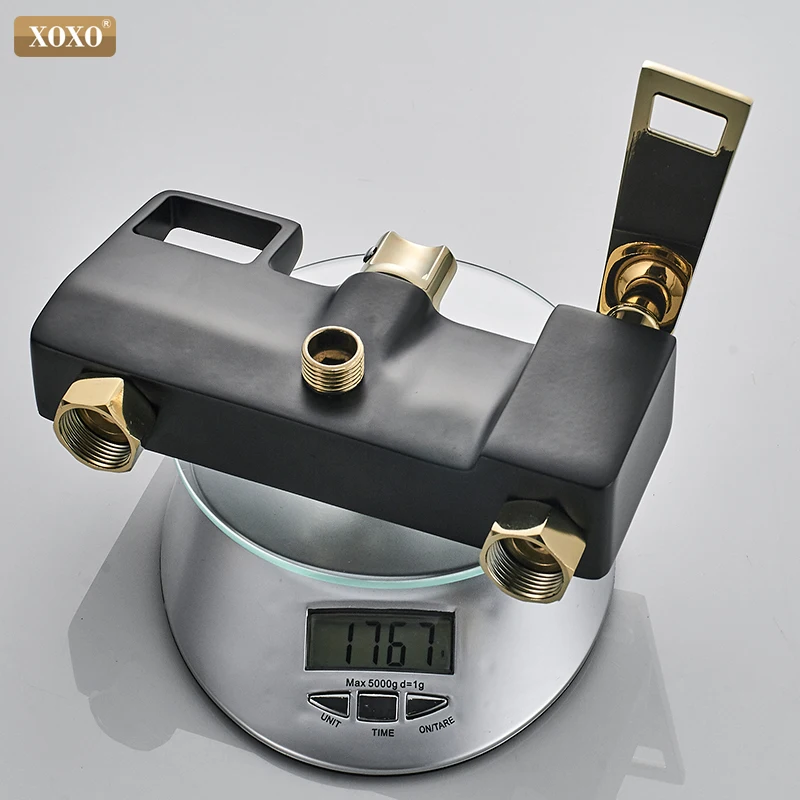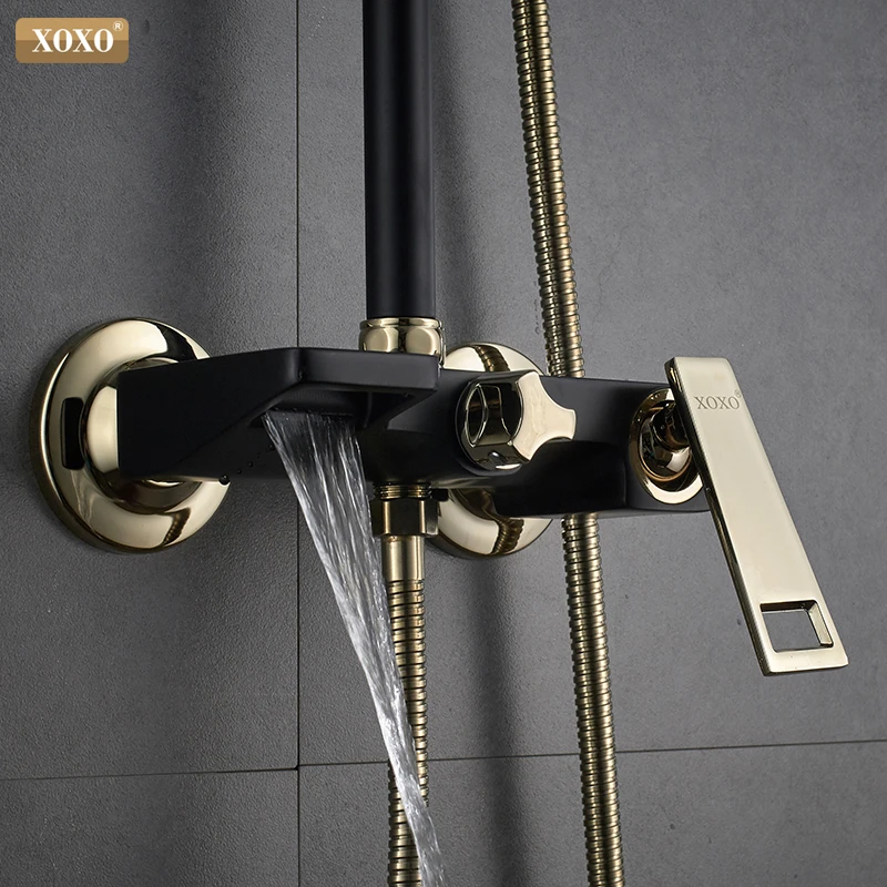 Смеситель для душа XOXO, медный кран для ванны с золотым и черным покрытием, настенный, набор Водопад