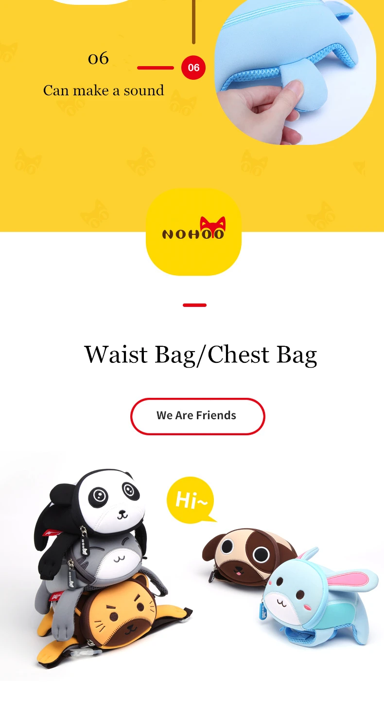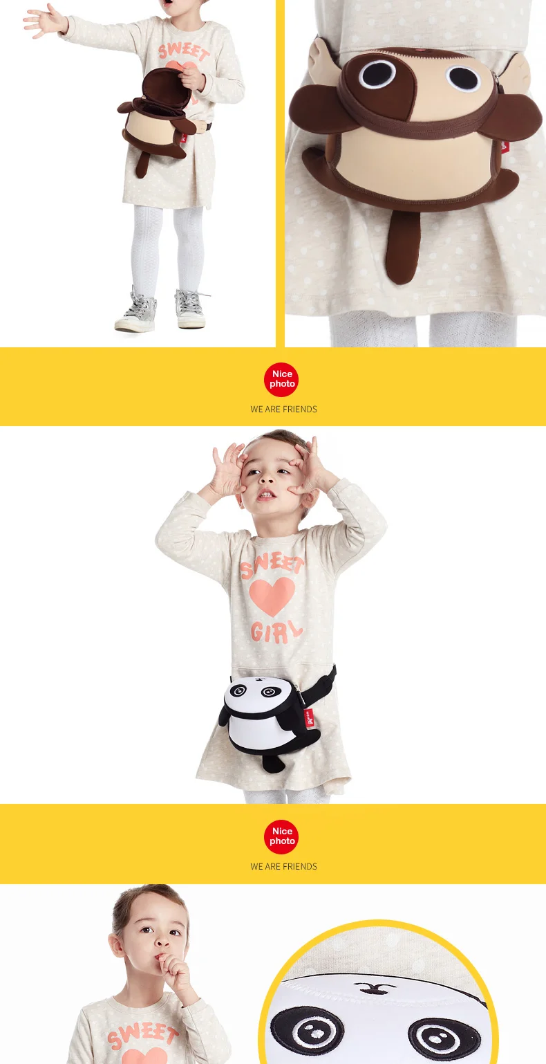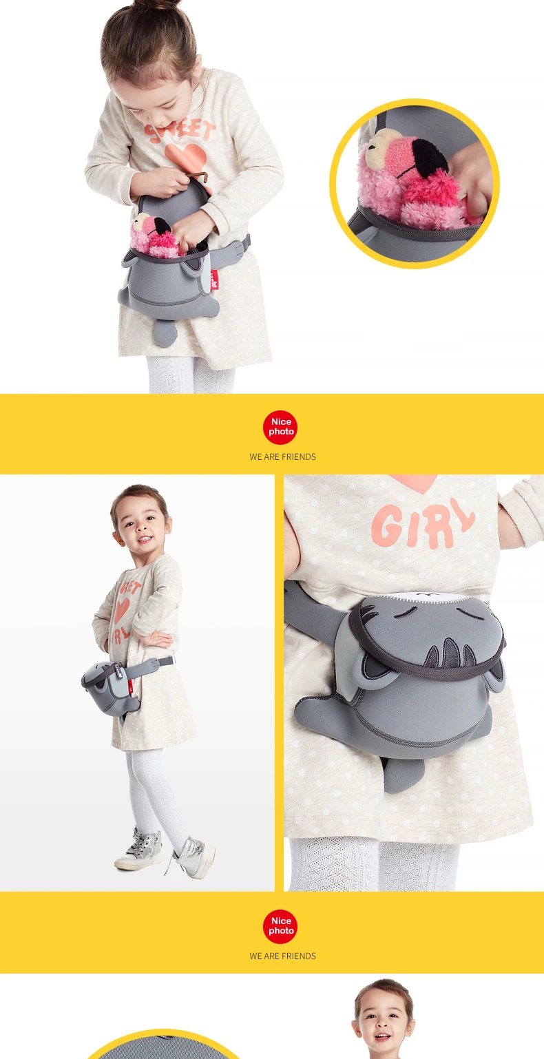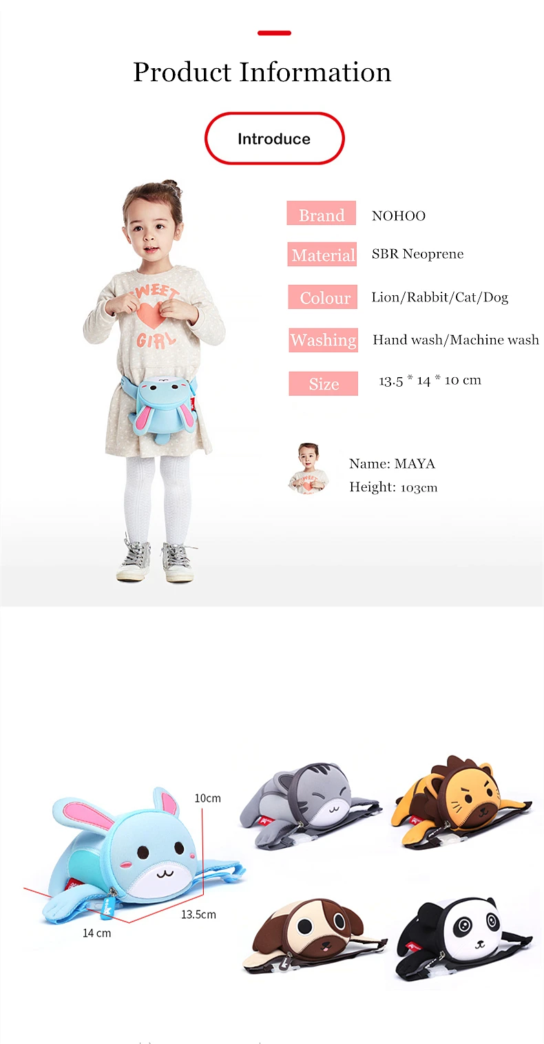 NOHOO поясная сумка для мальчиков и девочек, мини 3D мультяшная поясная сумка из неопрена, водонепроницаемая сумка, модная детская нагрудная сумка, сумка в виде животного