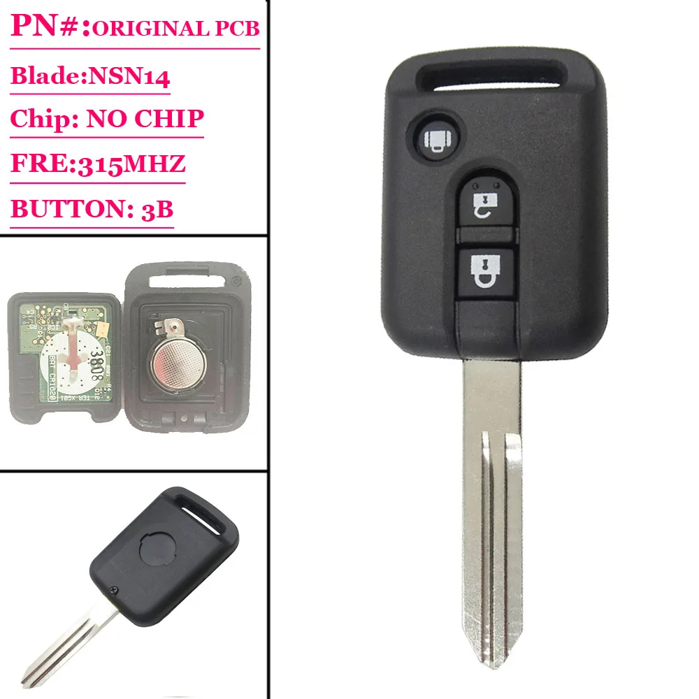 XNRKEY 3-кнопочный Автомобильный Дистанционный ключ 315 МГц без чипа NSN14 Blade для Nissan Micra Navara Almera Qashqai патруль X-trail Автомобильный ключ