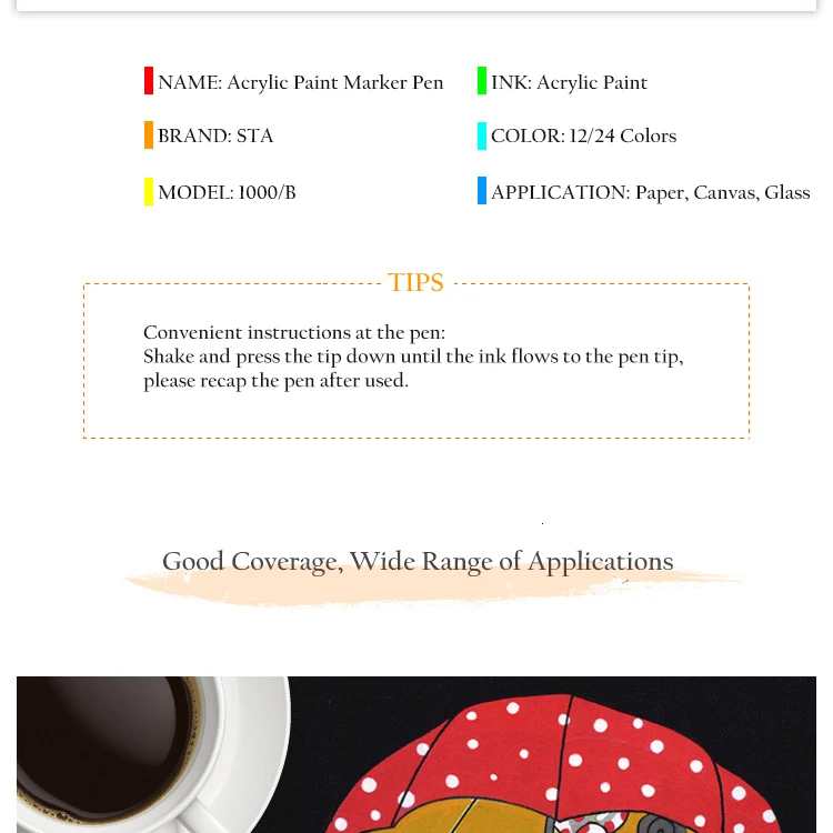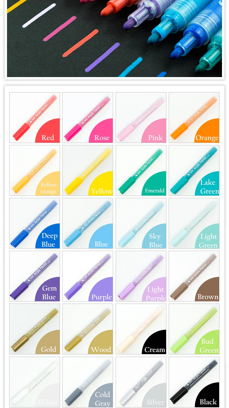 Каждый акриловые перья наполнены яркими непрозрачными цветами, изготовленными из акриловой краски на водной основе профессионального класса. Безопасно для вашего здоровья и окружающей среды, так что вы можете продолжать выражать свою страсть; Без растворителей, без токсичных химических веществ, без скрученных носов, без мертвых клеток головного мозга и легко очистить кожу, просто купите сейчас