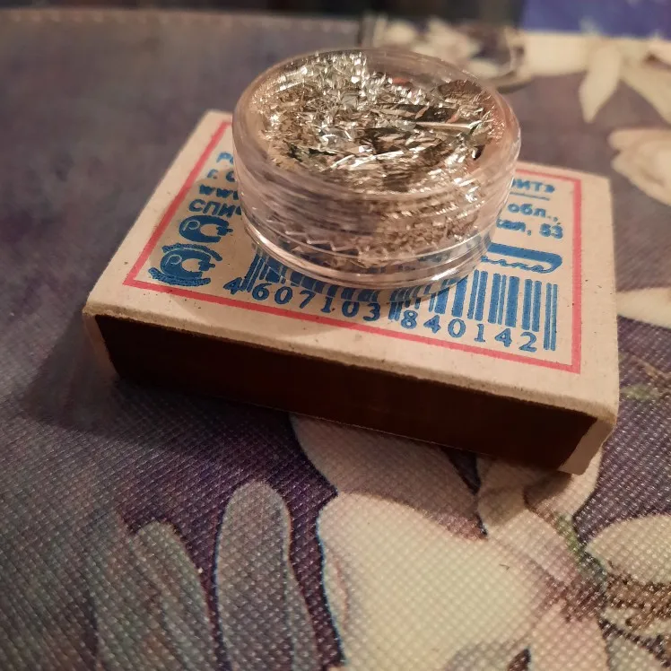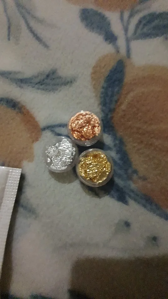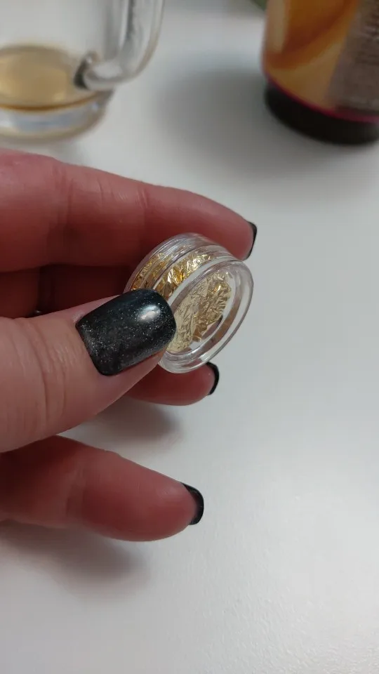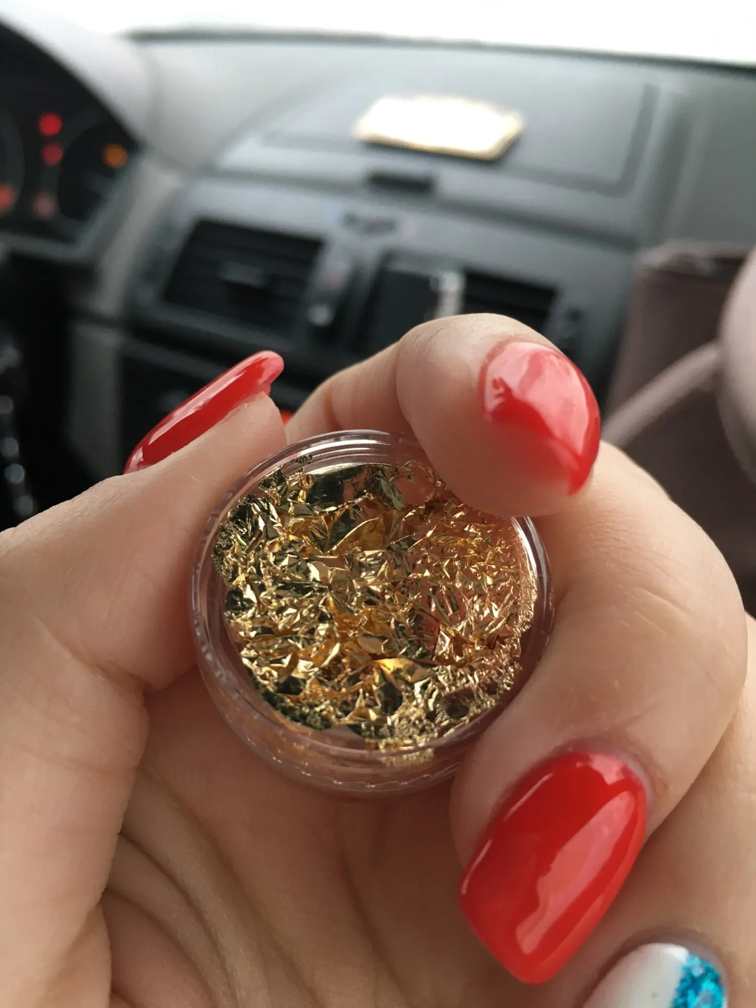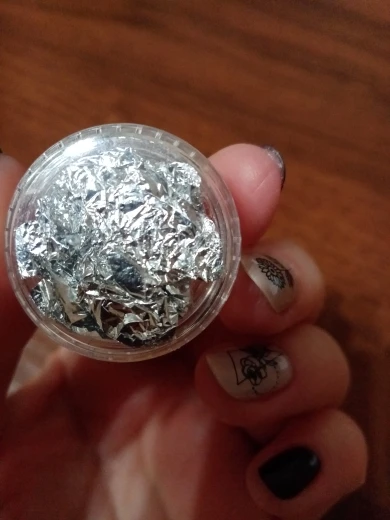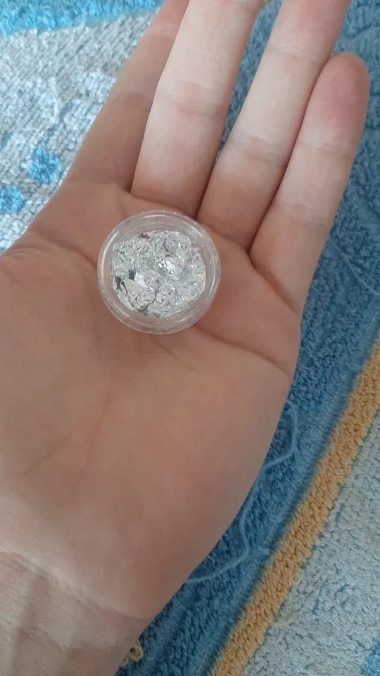 Пришли баночки быстро. Просто бомбическая вещица! Довольна как слон В баночке цельный кусок ооочень тоненькой фольги. Заказывала три расцветки. Как крепила на ногти: база, цветное покрытие, нонюсенький слой базы, фольга кусочками, выравнивала базой, топ с лс. Фото отчёт, рекомендую однозначно!