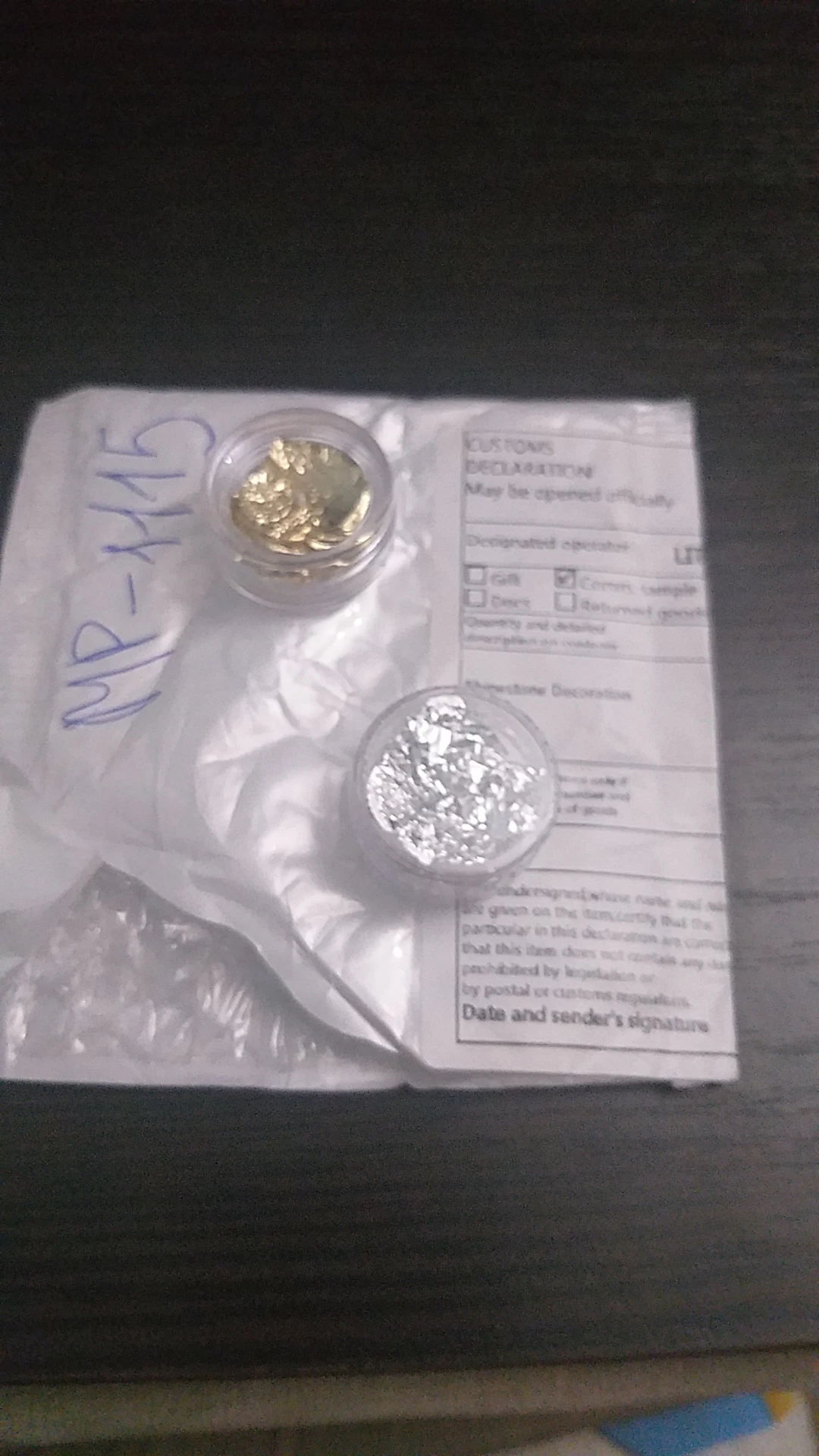 Ждала эту посылку больше всего, а она шла тысячелетие, если не больше. Уже думала что не получу заказ, но он все же приехал. Слюда хорошая, в коробочках по 1 листику. Хватит на несколько применений точно. Уже пробовала делать дизайн с серебряной - очень понравилось.
