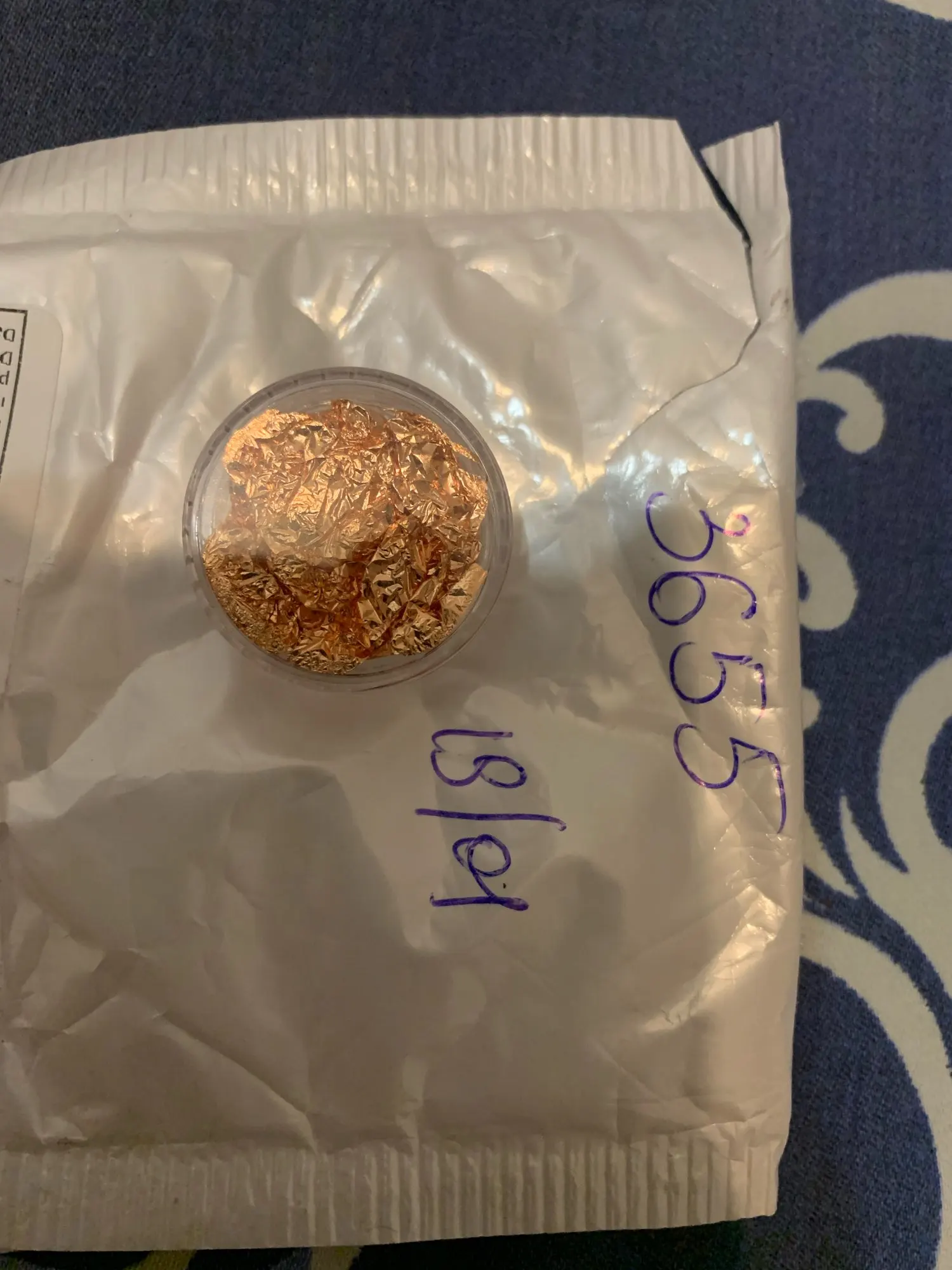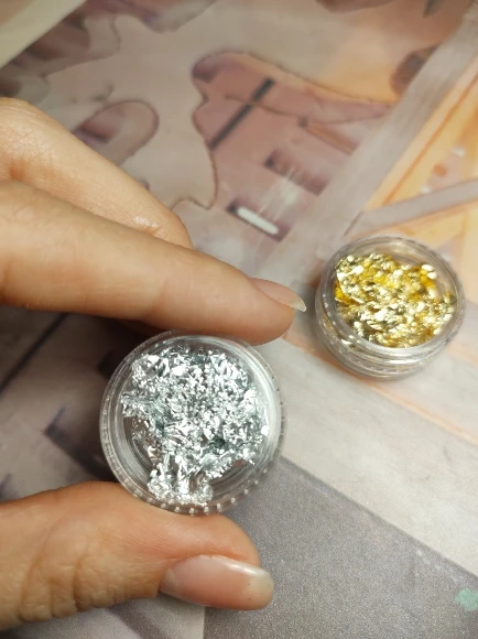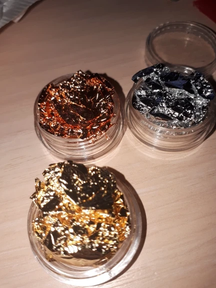 Доставка очень долгая. Сама поталь хорошая, но золото слишком насыщенное, хотелось бы поспокойнее оттенок (на фото не сильно яркий)