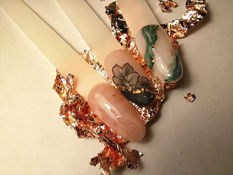 ПАТАЛЬ ОТЛИЧНАЯ,ХОТЯ БЫВАЕТ И ЛУЧШЕ,У МЕНЯ ДО ЭТОГО БЫЛА ДРУГАЯ,ТА ПРЯМ НАИТОНЧАЙШАЯ И ЛУЧШЕ ЛОЖИТСЯ И РАСПРЕДЕЛЯЕТСЯ,ВТИРАЕТСЯ,НО ЭТА ТОЖЕ СОЙДЁТ,КАК ПРАВИЛО НАНОШУ НА ЛИПКИЙ СЛОЙ ЦВЕТНИКА ИЛИ ПРОМАЗЫВАЮ ТОП,БАЗУ ИЛИ ПРОСТО НА ЛИПКОСТЬ,КОГДА КАК.ПЕРЕКРЫВАЮ ЖИДКИМ ТОПОМ В ДВА СЛОЯ,ИНОГДА МОЖЕТ МЕСТАМИ ТОРЧАТЬ,ТОГДА ОПИЛИВАЮ И ПЕРЕКРЫВАЮ.ОТРЫВНУЮ ФАЛЬГУ МОЖНО ИСПОЛЬЗОВАТЬ КАК УГОДНО В ДИЗАЙНАХ,СМОТРИТСЯ КРАСИВО,В ТОМ ЧИСЛЕ И ПОД МАТОВЫМ ТОПОМ,ЦЕНА КОПЕЕШНАЯ,НЕ ПОНРАВИЛАСЬ ТОЛЬКО БРОНЗОВАЯ,СЛИШКОМ ЯДРЕНАЯ ПО ЦВЕТУ,НО ЭТО УЖЕ ДЕЛО ВКУСА.УДОБНЕЕ С НЕЙ РАБОТАТЬ ПИНЦЕТОМ