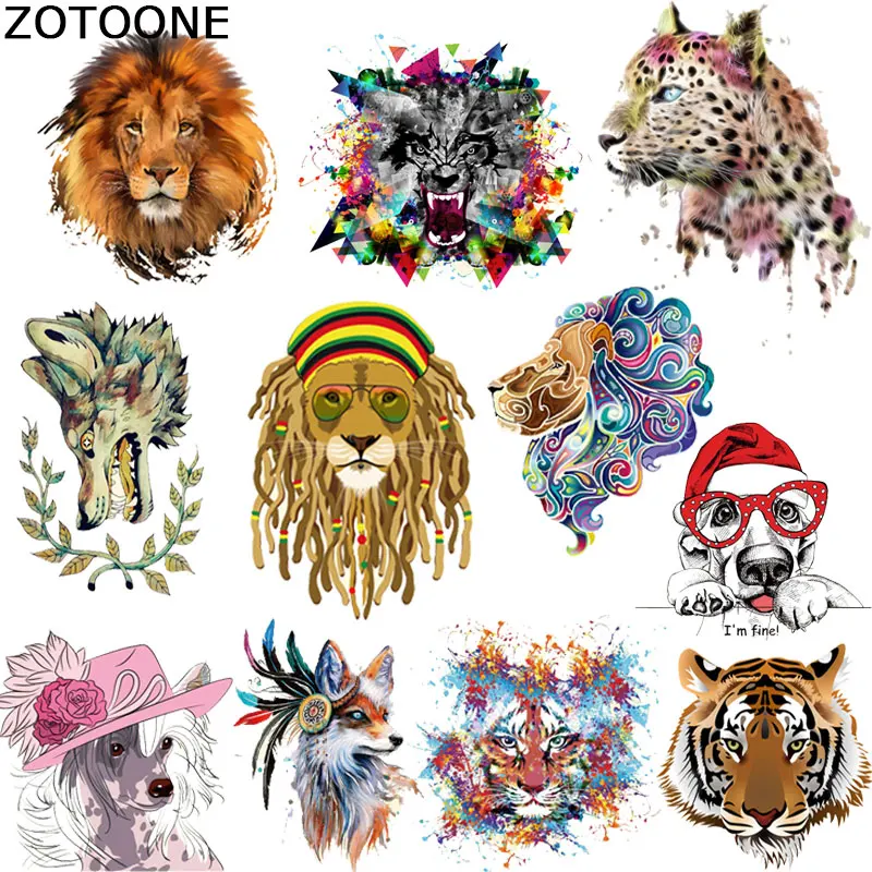 Термоклейкая переводная нашивка ZOTOONE, нашивка с изображением тигра, Льва, собаки, животного, для одежды, стандартная моющаяся нашивка с аппликацией