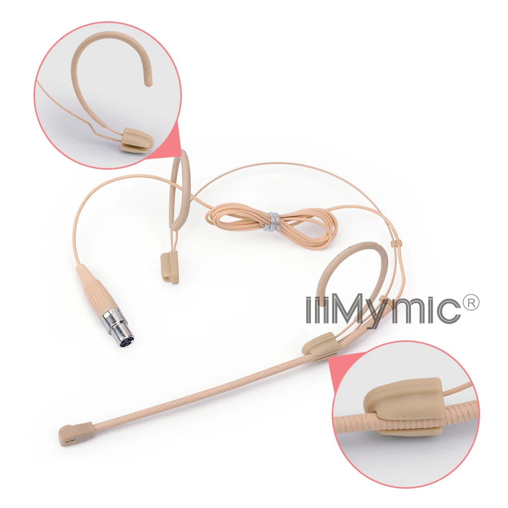 IiiMymic H-81S9-3 3pin мини XLR Сделано в Китае TA3F Разъем Бежевый головной гарнитуры микрофон для AKG Samson Беспроводной тела-Pack передатчик
