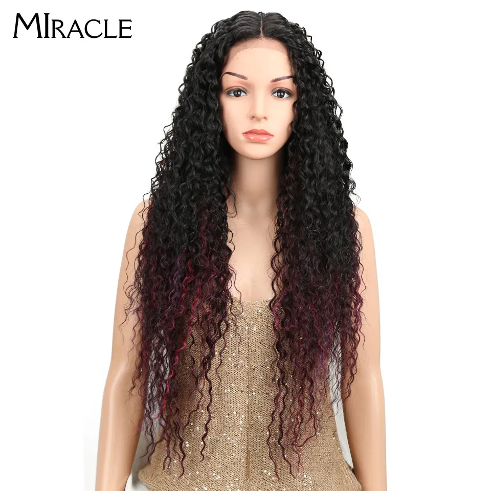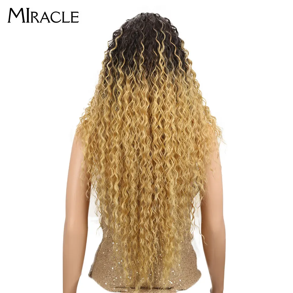 1.MiracleТермостойкие синтетические парики для черных женщин кудрявые кружевные парики 30 "омбре Блонд натуральный кружевной передний парик средняя часть